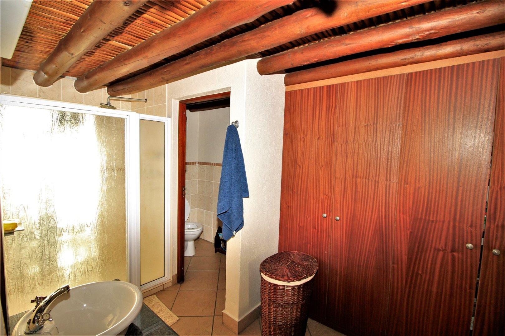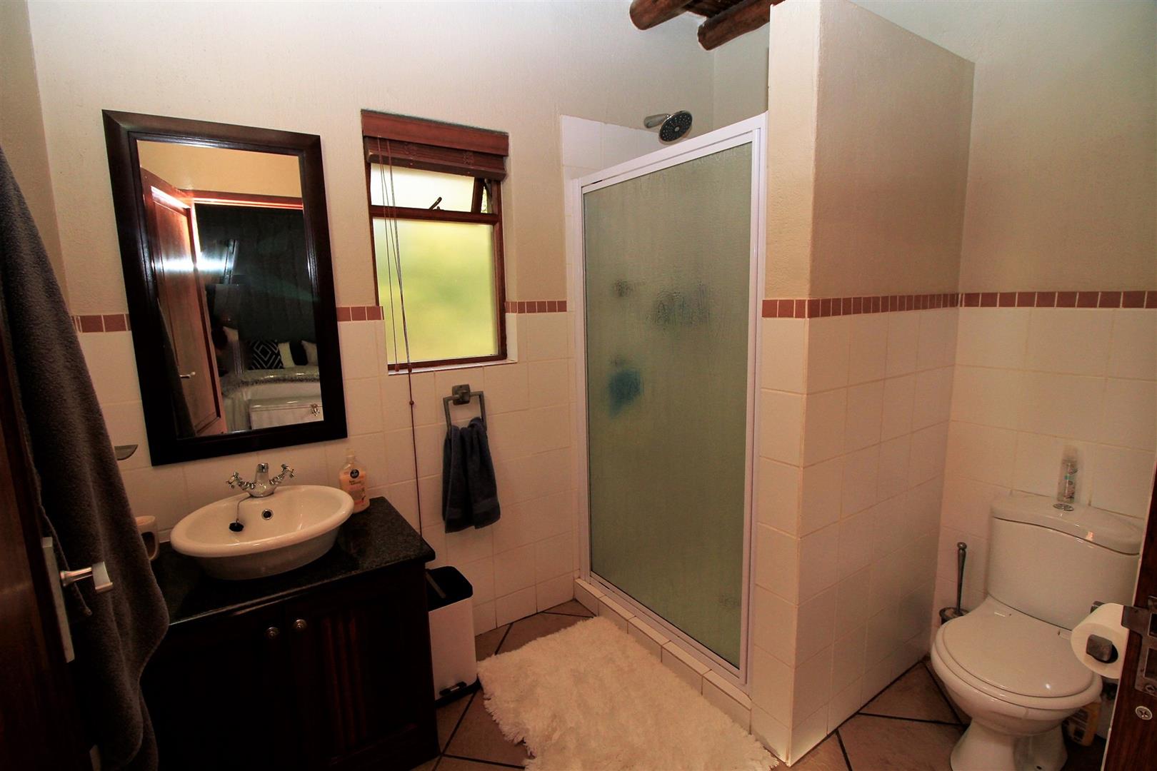 The master bedroom has a stunning en-suite bathroom with double basin, bath, toilet, shower and dressing room. The guest suites have en-suite bathrooms with toilet, basin and shower. The property has several added features such as a walk-in cold room, solar power and a 5000l water tank. You can even sit on the patio and watch the wildlife come and drink at your own private water hole. This is without doubt a dream home with every luxury imaginable – lots of living space, wonderful views and set in a pristine bushveld environment.