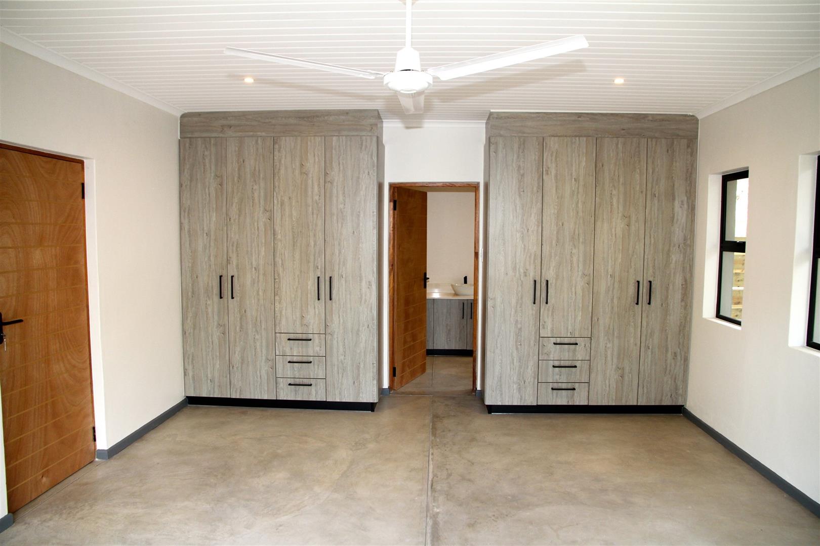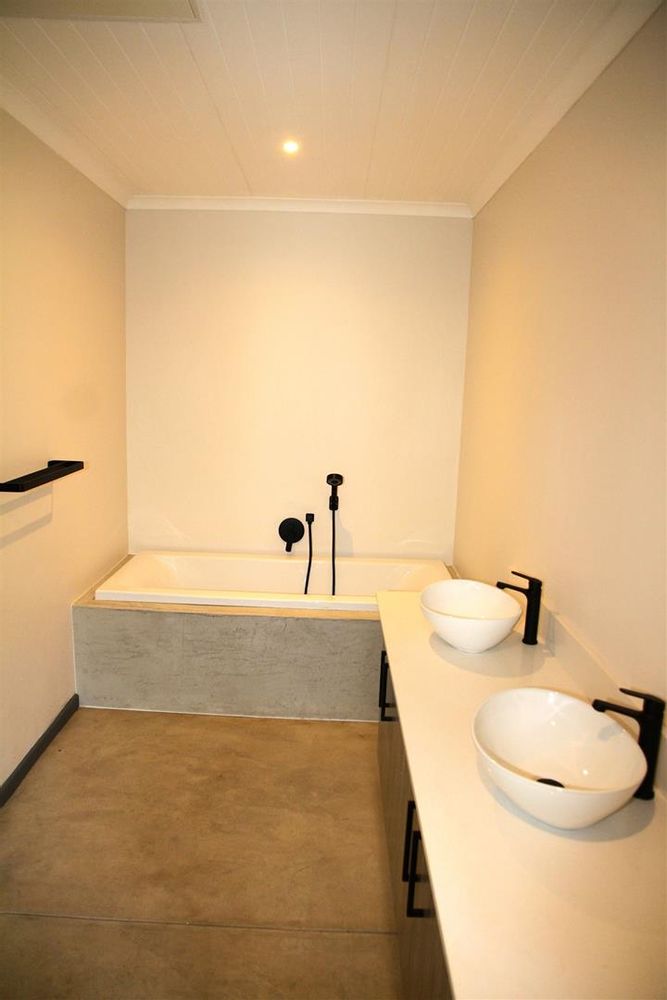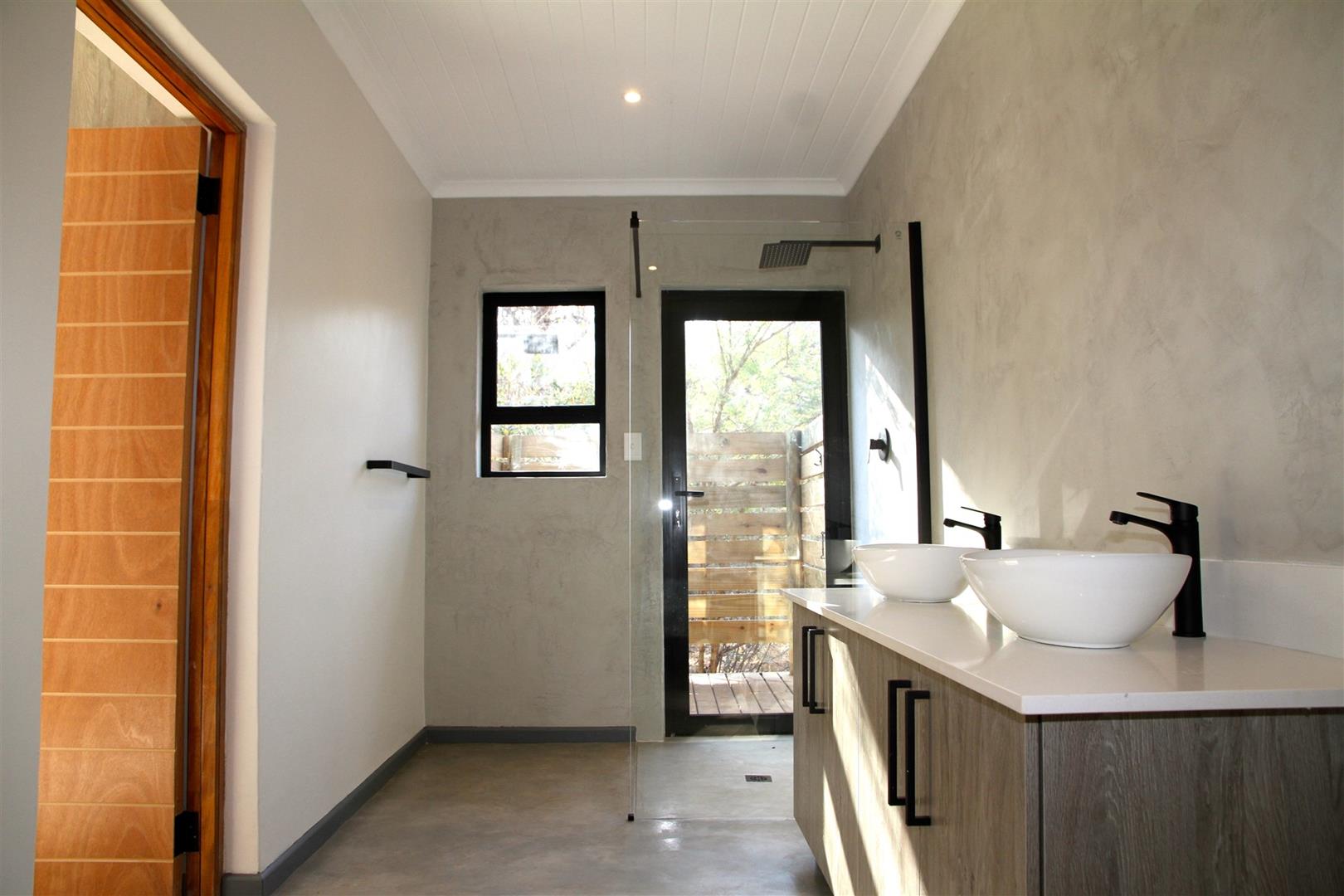 Step inside to discover a generous open-plan living, kitchen, and dining area that flows onto a spacious covered patio, swimming pool, and boma, perfect for relaxed summer afternoons and sunset gatherings. The home offers three en-suite bedrooms, each featuring picture windows and sliding doors for an uninterrupted connection to the outdoors. Two bedrooms include indoor/outdoor showers, while all three open onto wooden decking with access to the pool area. Additional features include AC in all the bedrooms, ceiling fans throughout, separate scullery, storeroom, courtyard, guest toilet and a double carport.