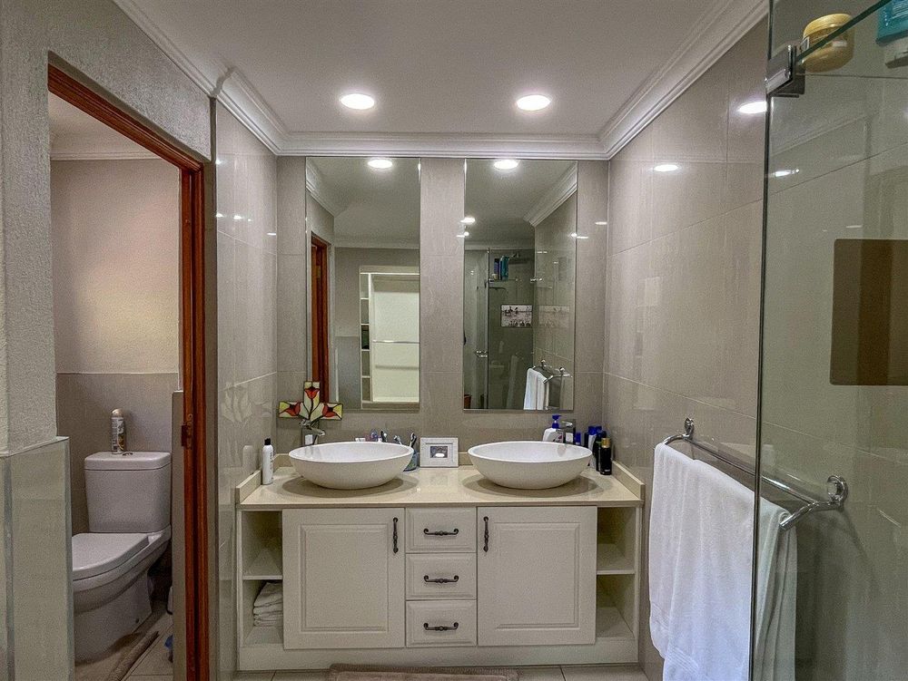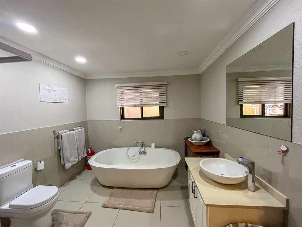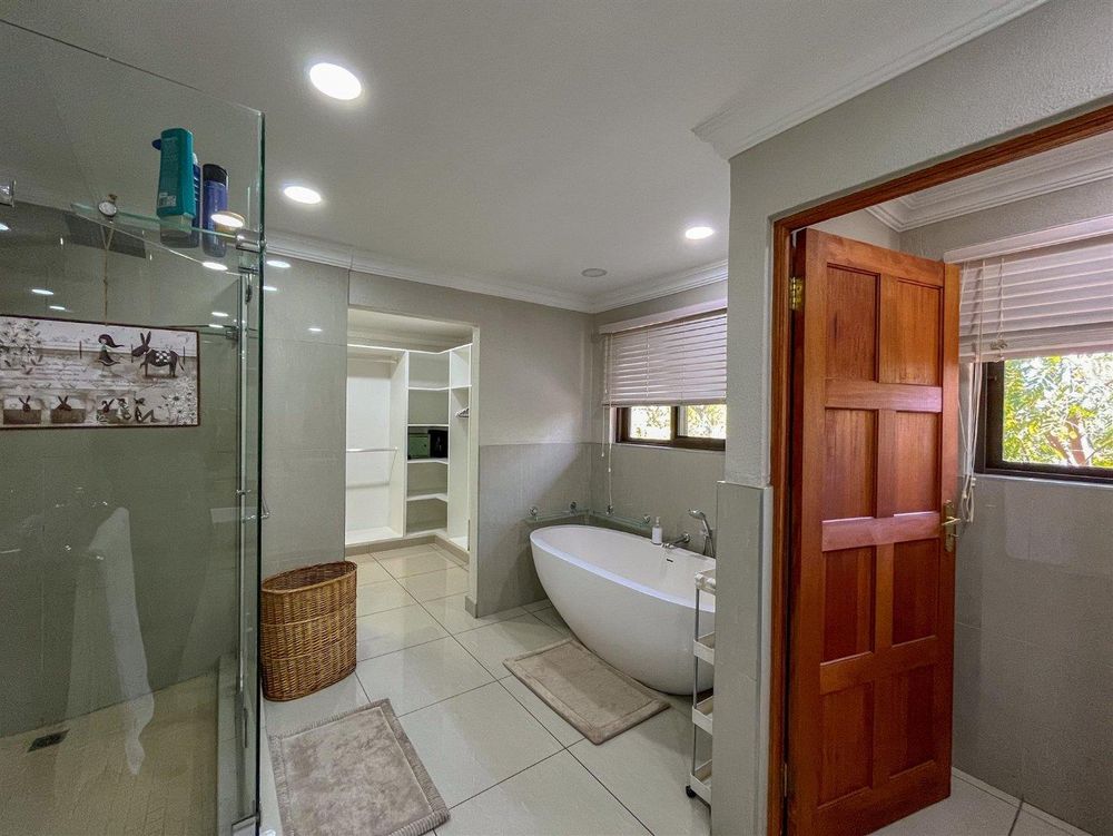 The lower level features a private guest suite with its own lounge, gym area, and built-in bar—an ideal retreat for visitors or extended family. Additional features include a guest toilet, ample built-in storage, loft storage, baboon-proof mosquito screens, and dual entrances with undercover parking. The home is equipped with a 12kVA backup power system for added peace of mind, and two staff accommodation units provide further practicality.
