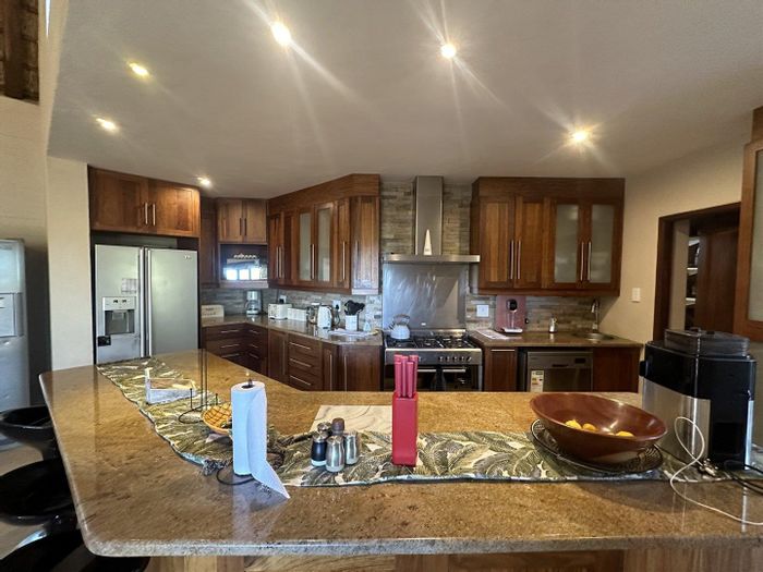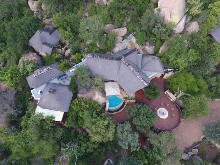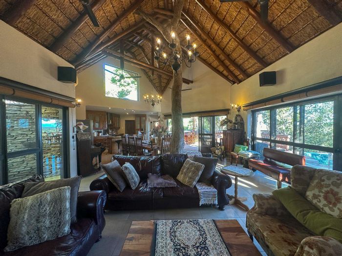 Live among roaming plains game in Raptors View Wildlife Estate, enjoying a huge covered patio with braai and pool overlooking bush. Furnished, four beds, four baths, two garages.