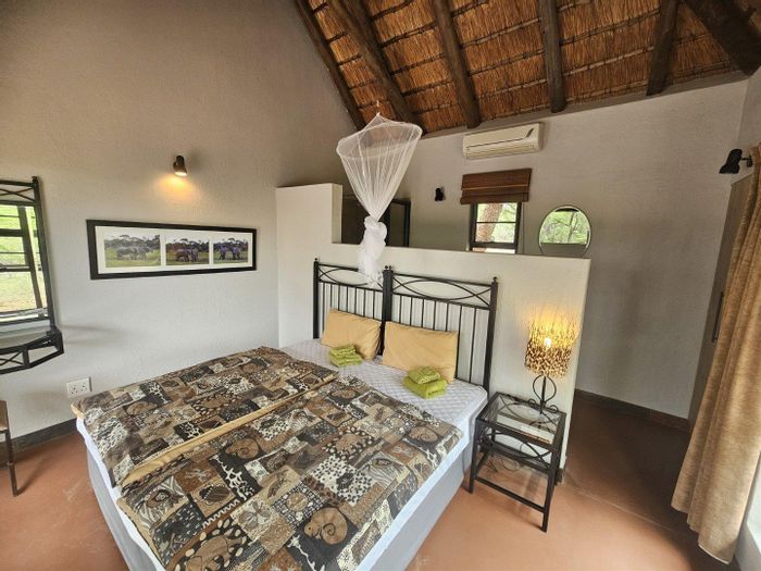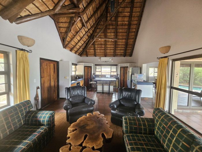 Bushveld retreat on a Big-4 reserve with a huge deck, bar, pool and boma for evenings around the fire; three en-suite bedrooms and double covered parking.