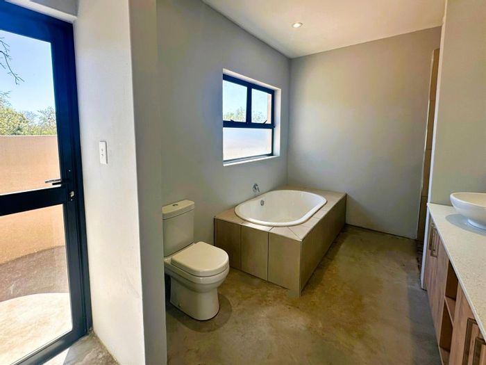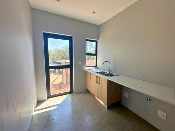 Safari-style living in Moditlo Estate, minutes from Hoedspruit and Kruger gates, with open-plan modern kitchen and covered patio with built-in braai overlooking private pool; three en-suite bedrooms.