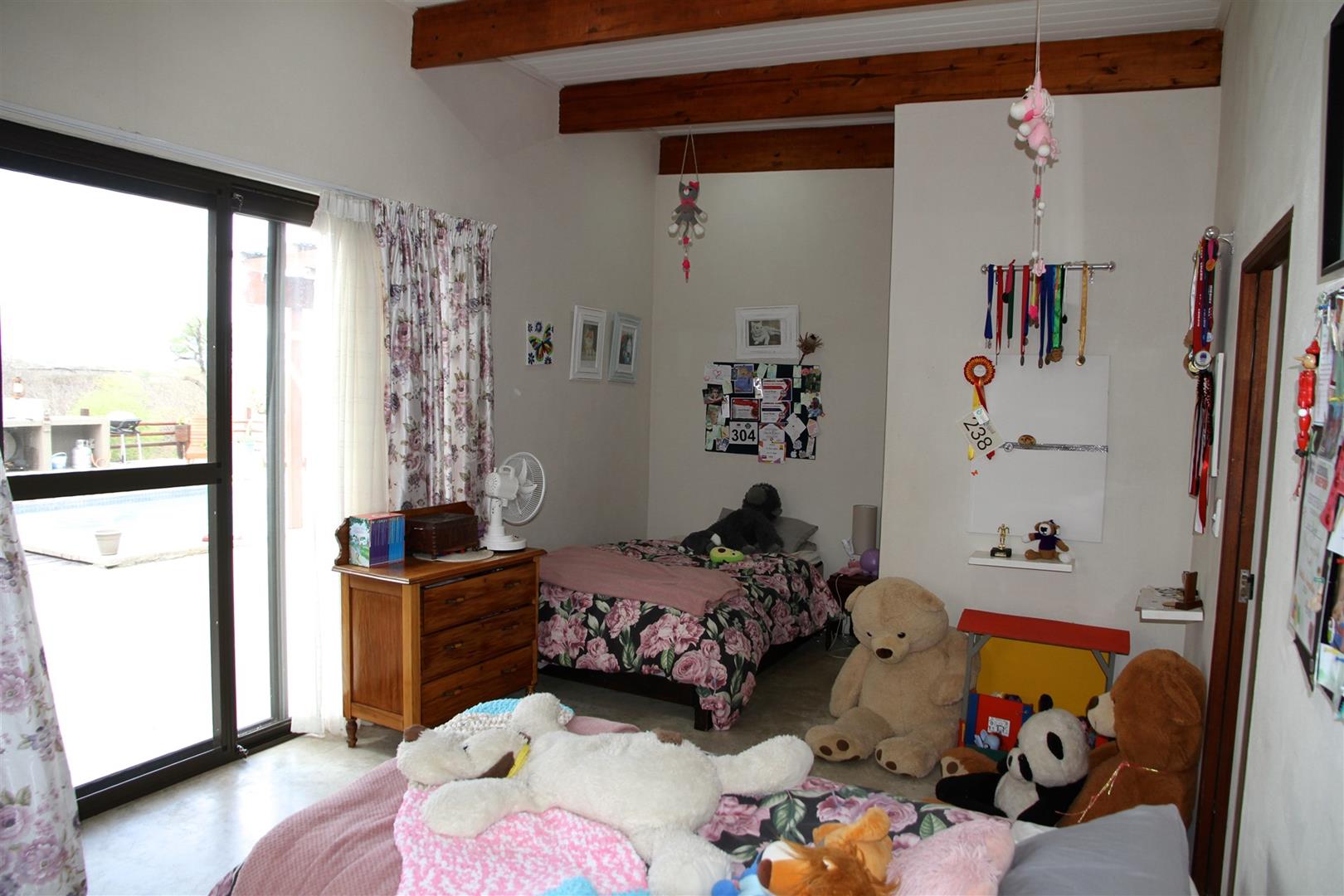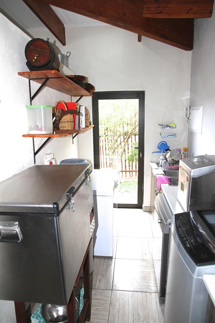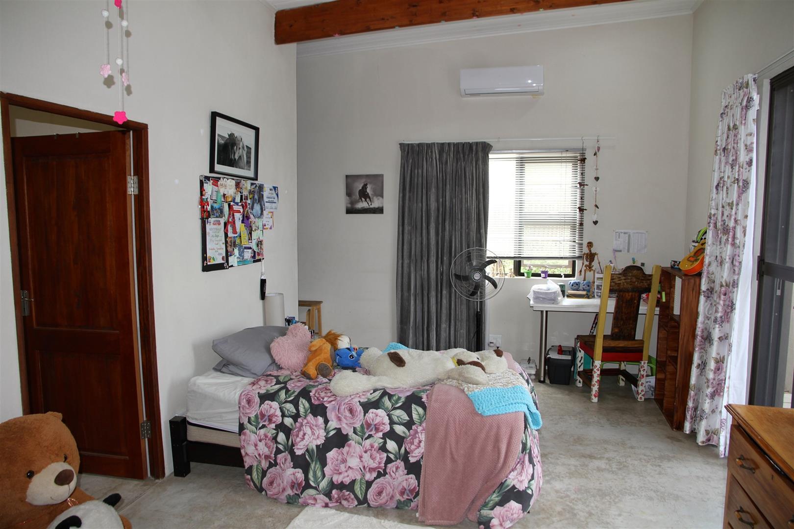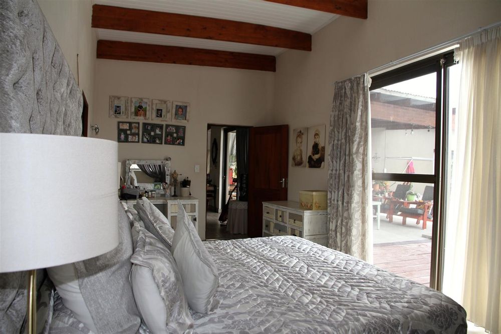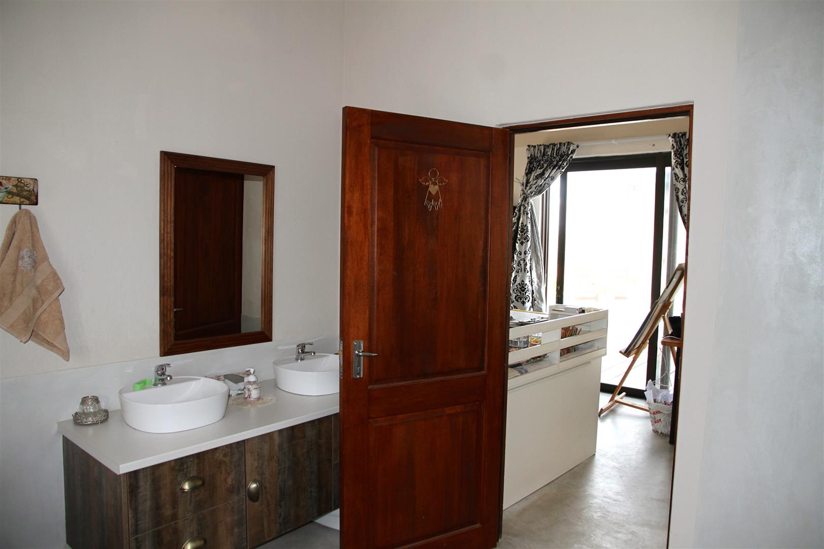 Additional features include paved entrance, 2 open parking bays, automated gate access, an open-sided double garage, natural latte fencing around a lovely landscaped garden with lawns and acacia trees, a water feature, water storage and filtration systems, and a separate outside toilet.