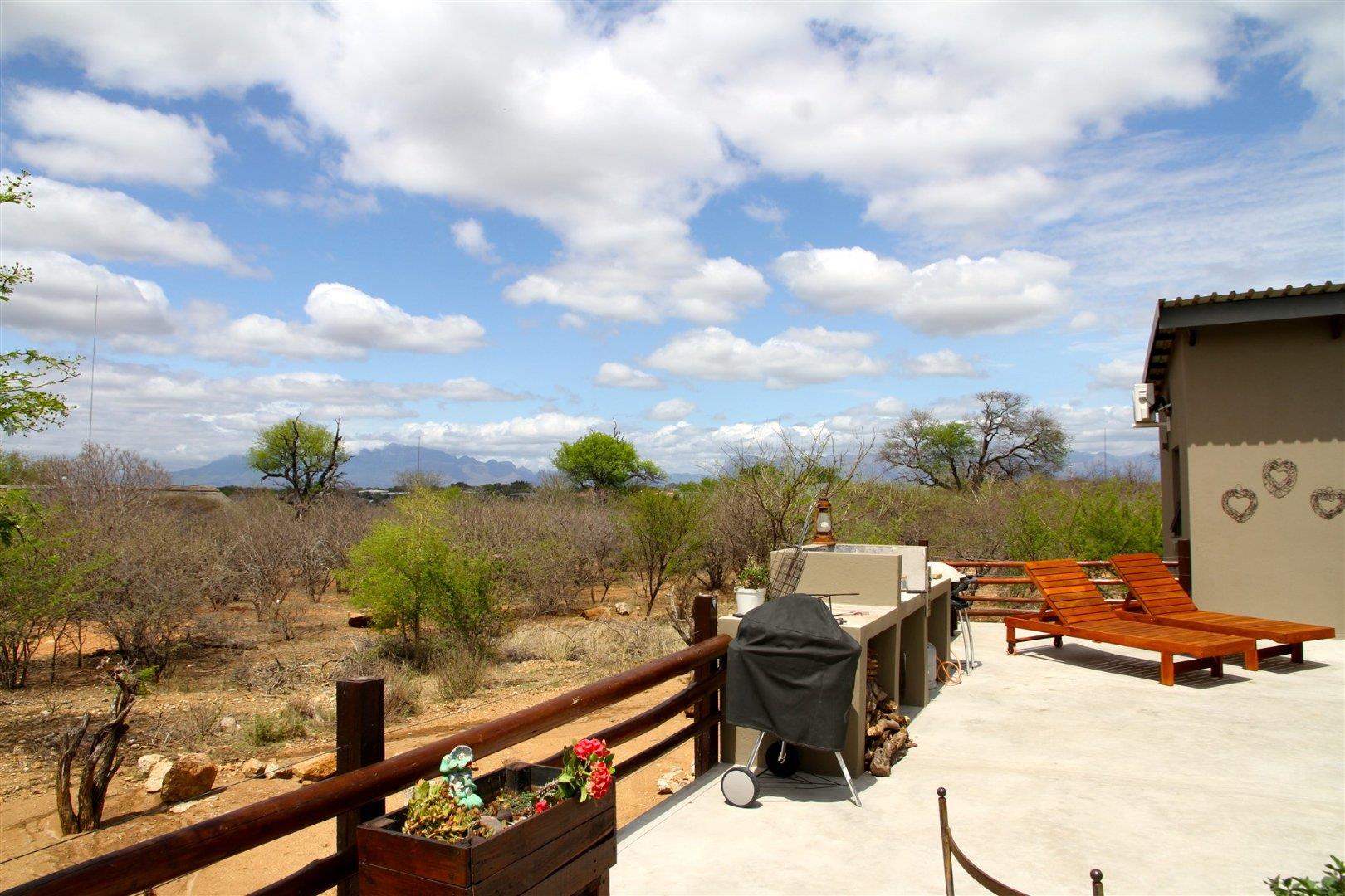The covered outdoor patio offers lovely views across Hoedspruit Wildlife Estate and toward the Drakensberg Mountains. The raised pool deck combining screed and wood finishes, includes a built-in braai/barbecue and provides an ideal setting to enjoy sunny skies and the African summer. With its enclosed garden this property is perfect for pet lovers, Hoedspruit Wildlife Estate allows for two canine pets.