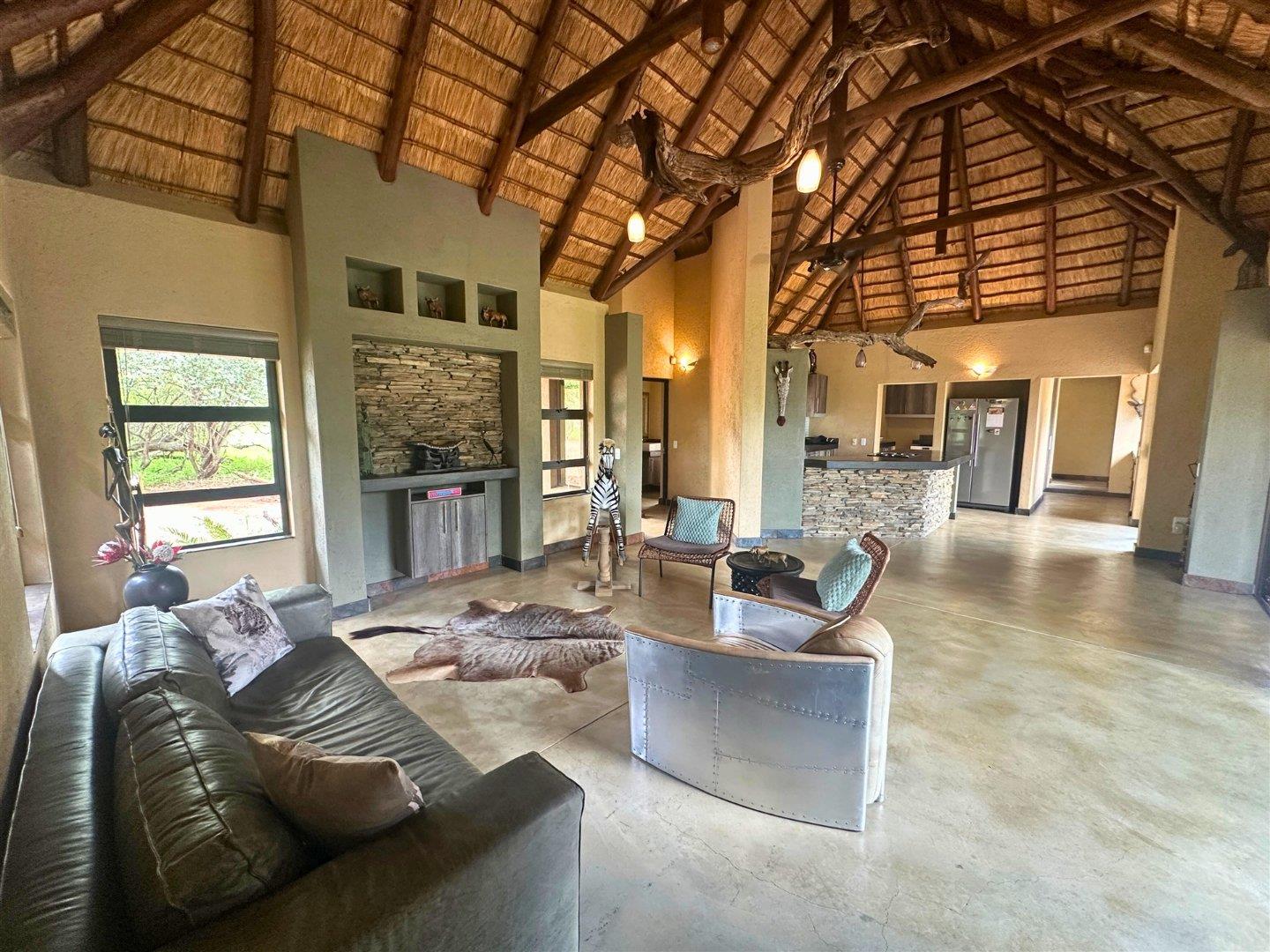 This three-bedroom, three-bathroom home is set within Hoedspruit Wildlife Estate and offers comfortable, easy bushveld living.