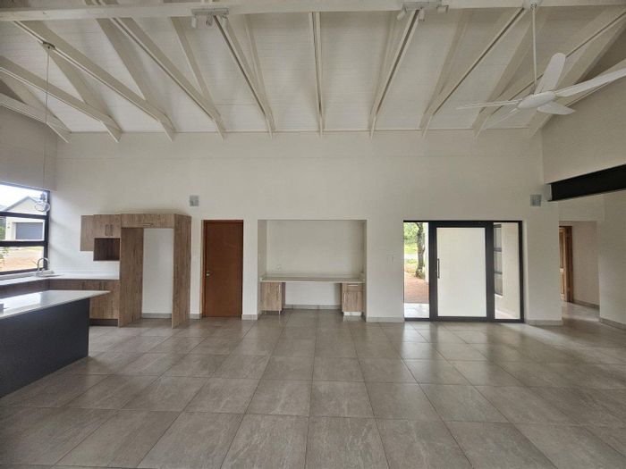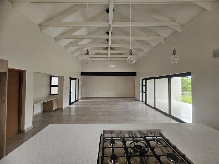 Live bushveld life in Raptors View Wildlife Estate, entertaining on a thatch-covered patio with built-in braai, pool and outdoor boma. Three bedrooms, two baths; furnished and secure.