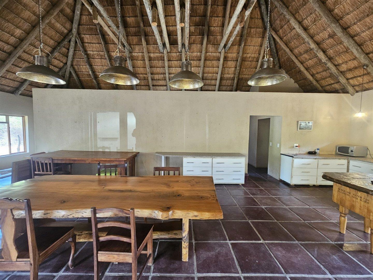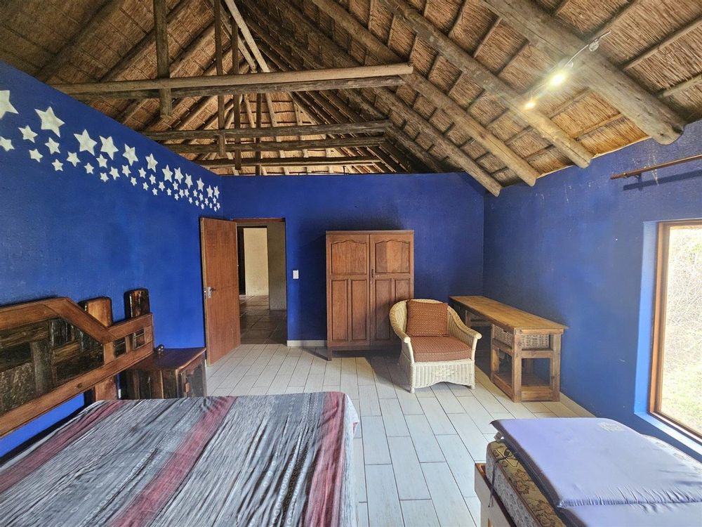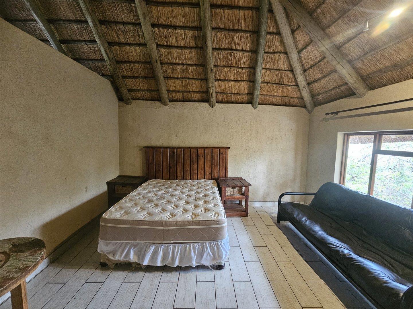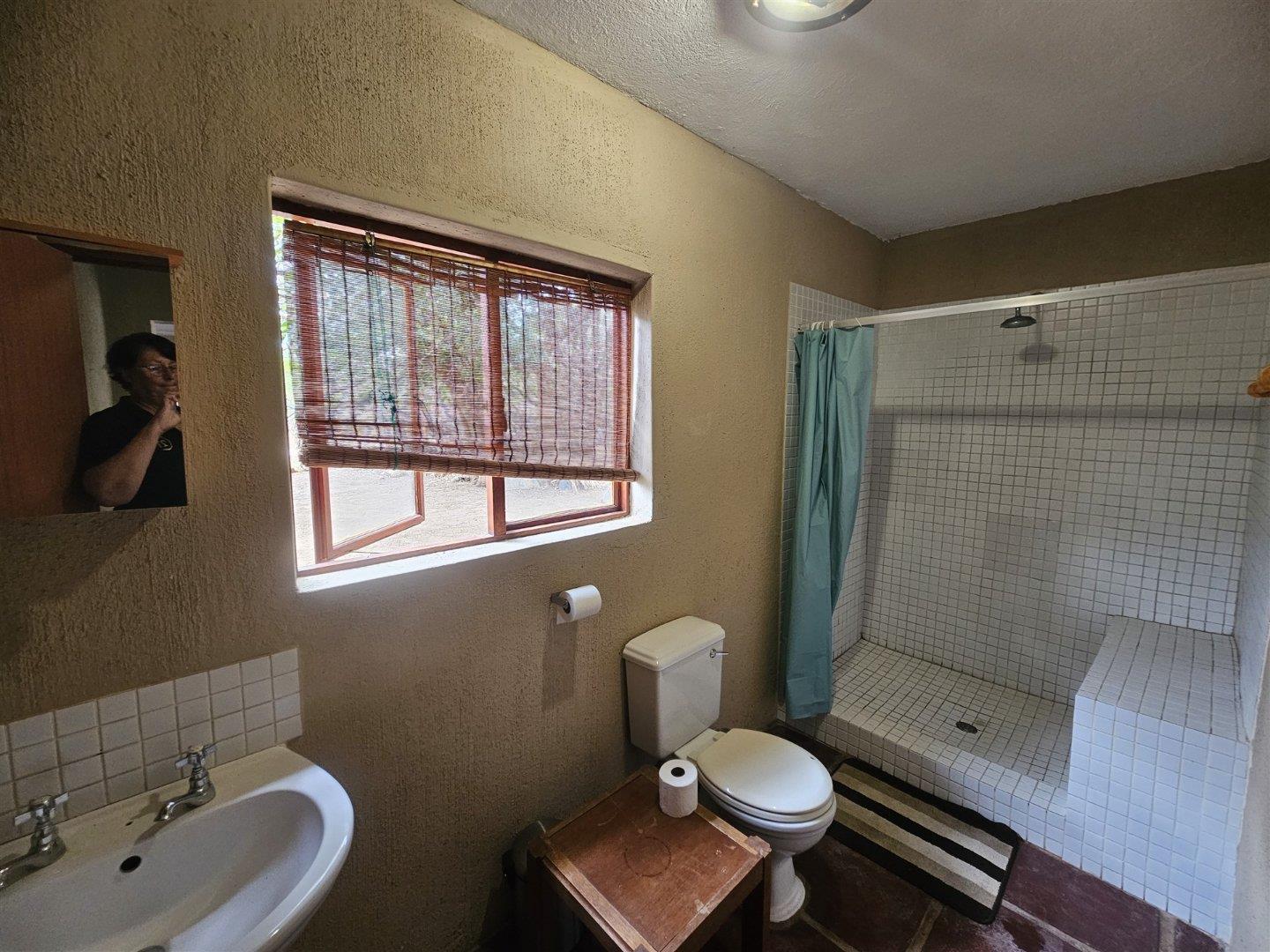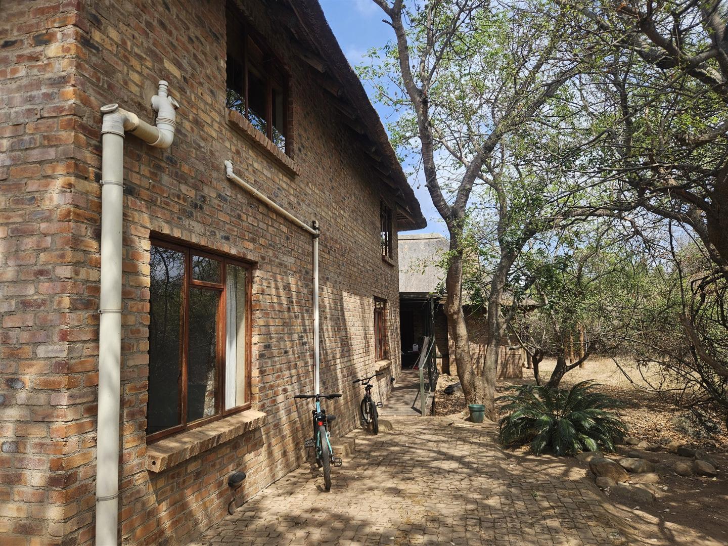 Immerse yourself in the tranquility of Escarpia Eco Estate in this very spacious home. Entertain in the huge dining room/games room/entertainment area/kitchen, which has a built in braai. Cross over a covered deck/walkway into a large sitting room, which leads upstairs to the bedrooms. There is 1 bedroom downstairs with a bathroom, guest toilet and study/office. The downstairs bathroom has a shower, toilet and basin. All floors are tiled. There is also an outside braai area.