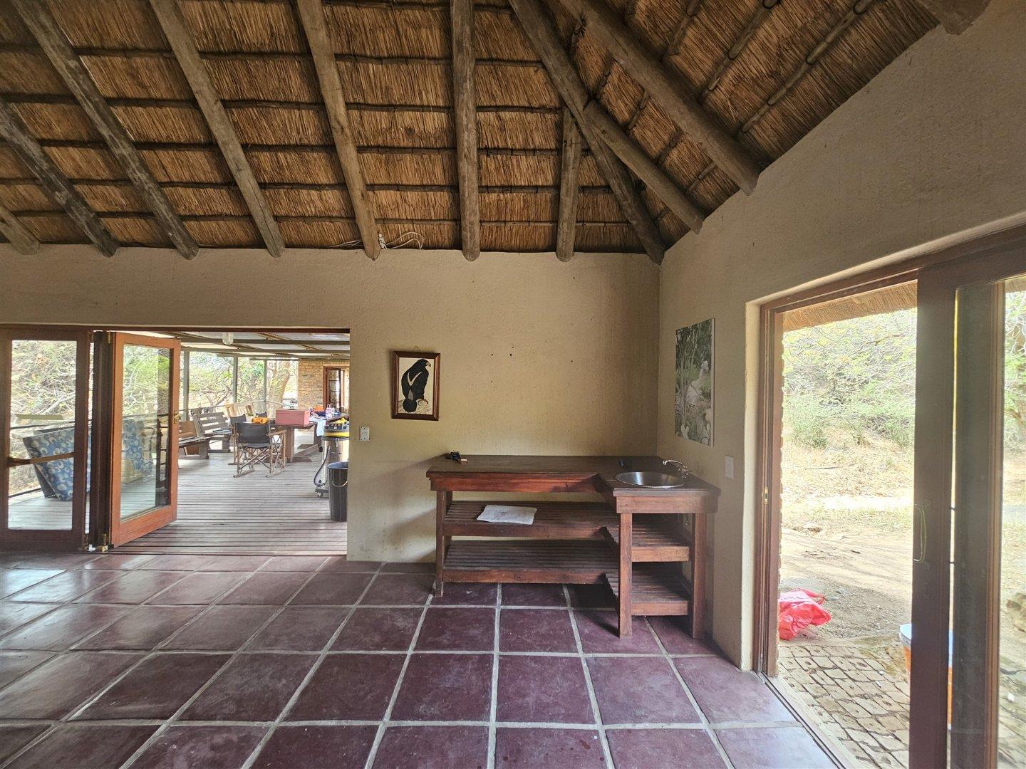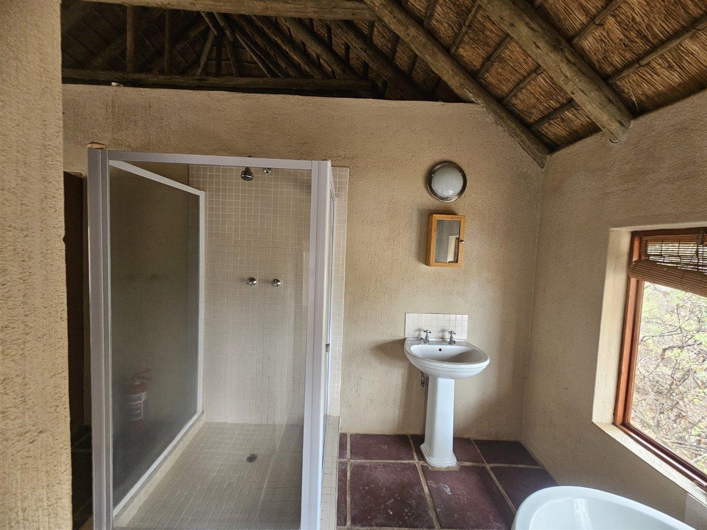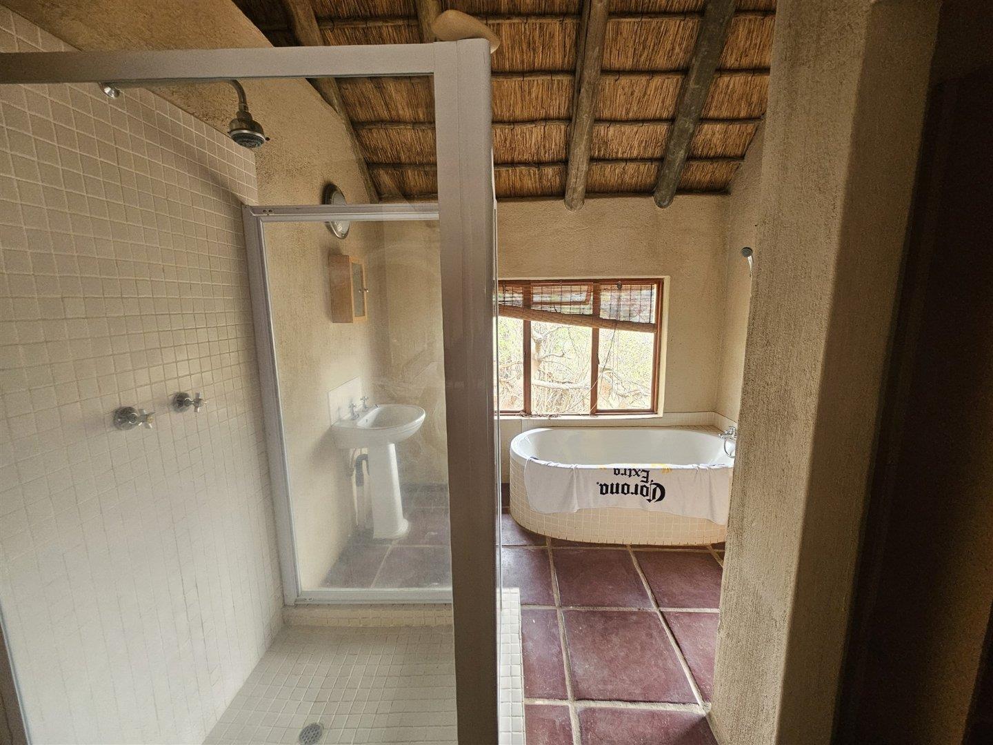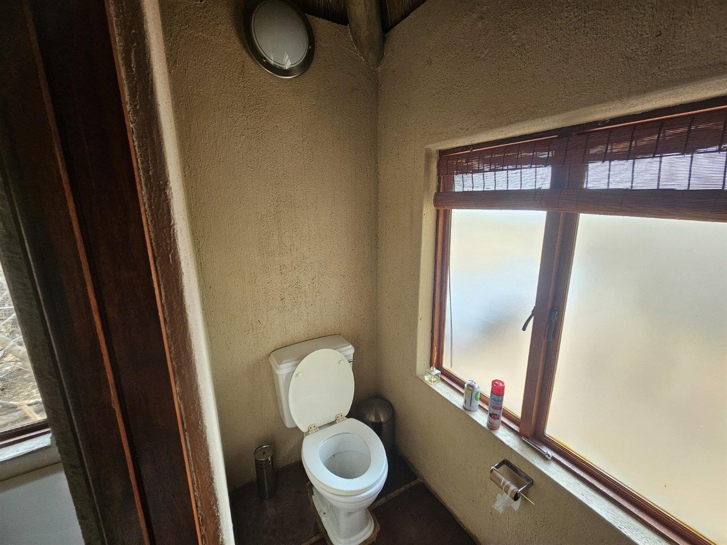 Immerse yourself in the tranquility of Escarpia Eco Estate in this very spacious home. Entertain in the huge dining room/games room/entertainment area/kitchen, which has a built in braai. Cross over a covered deck/walkway into a large sitting room, which leads upstairs to the bedrooms. There is 1 bedroom downstairs with a bathroom, guest toilet and study/office. The downstairs bathroom has a shower, toilet and basin. All floors are tiled. There is also an outside braai area.
