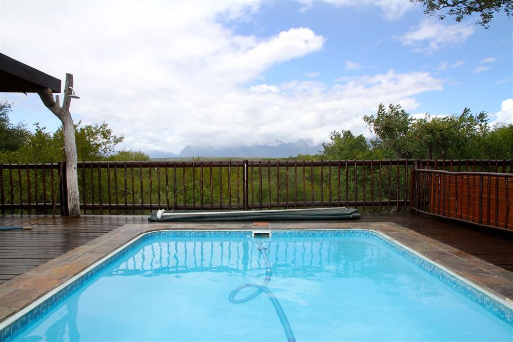 Sliding doors in the lounge lead out to the expansive patio with stunning views of the mountains. The patio also features a large sparkling pool and various seating areas where the bushveld views and outdoors can be enjoyed. This area is completed by a boma area.