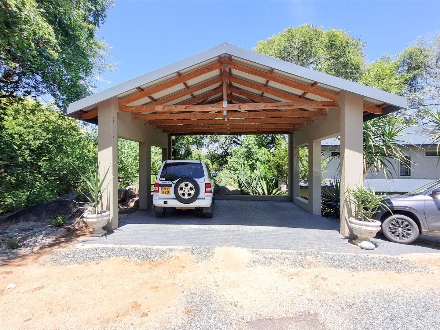 The spacious open-plan living area includes a lounge, dining room, and well-appointed kitchen with a separate scullery, as well as a courtyard and storeroom for added convenience. Sliding doors open onto a generous patio featuring a splash pool and boma area—perfect for relaxed outdoor living beneath the shade of magnificent mature trees.