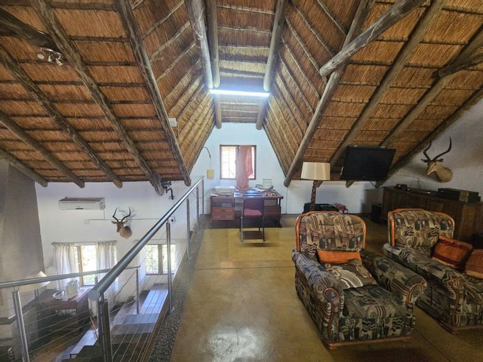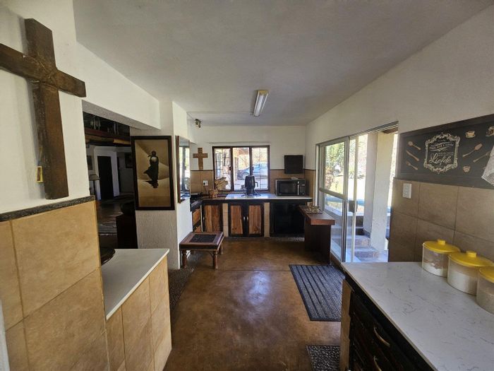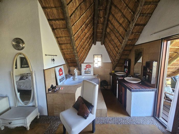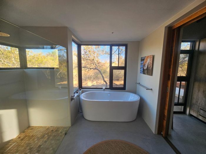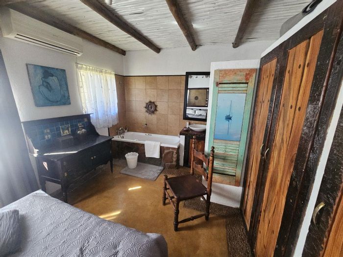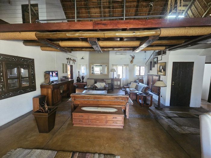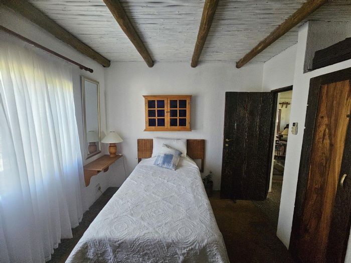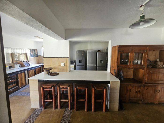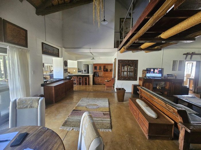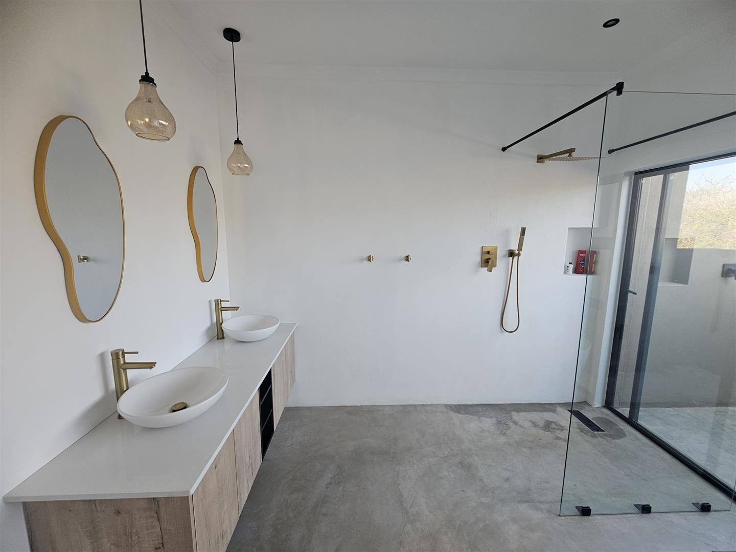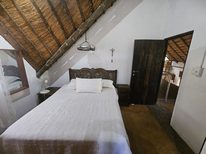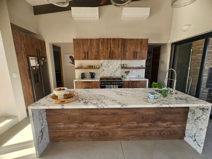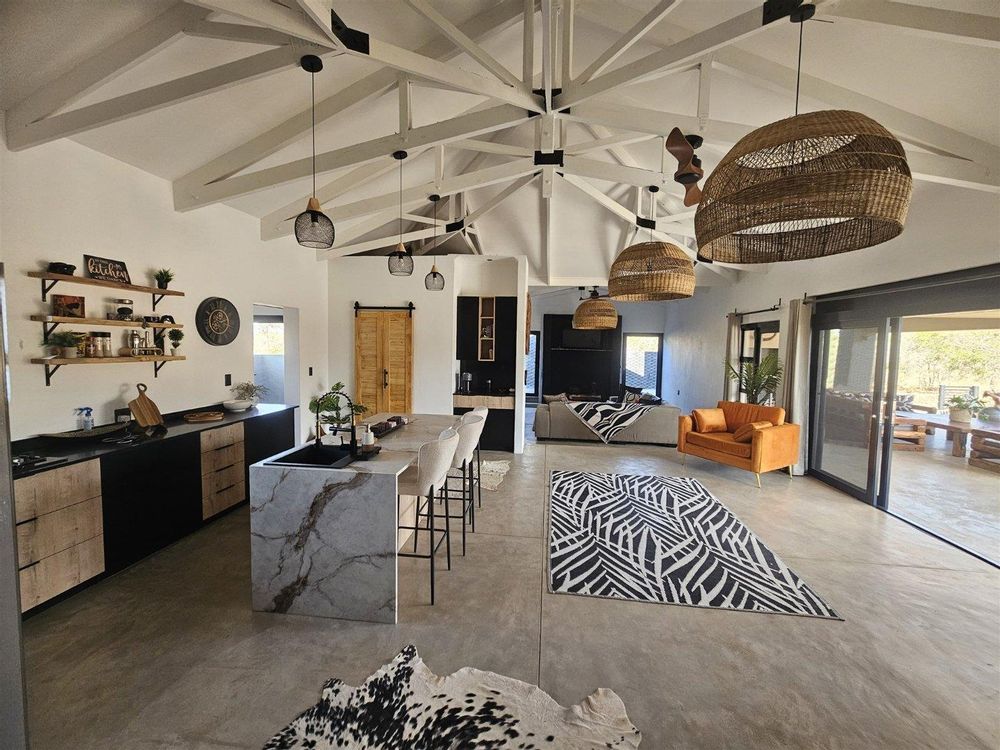 The light-filled entrance hall of this beautifully designed home welcomes you into the open, spacious living area with its African-inspired furnishings. The modern, open-plan kitchen is fully equipped and has an island with seating. This leads into a separate, out-of-sight scullery area.