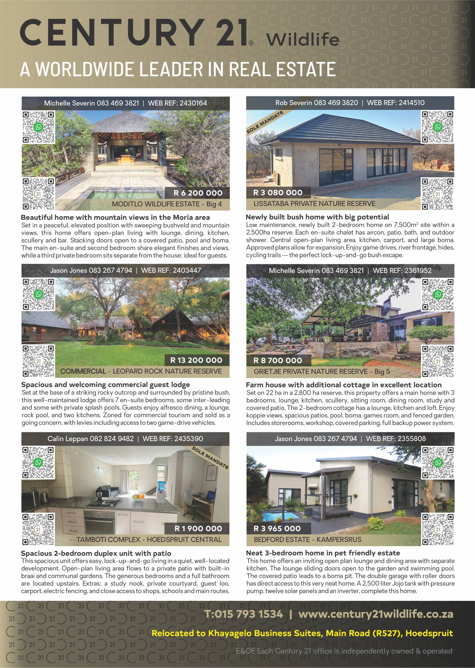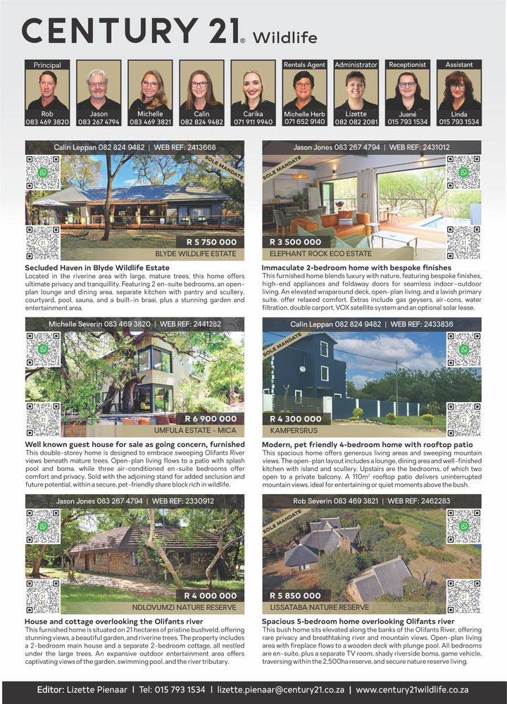 For those considering relocation or investment, the magazine includes featured properties in and around Hoedspruit, providing a snapshot of the bushveld lifestyle that continues to attract buyers from across South Africa and internationally.