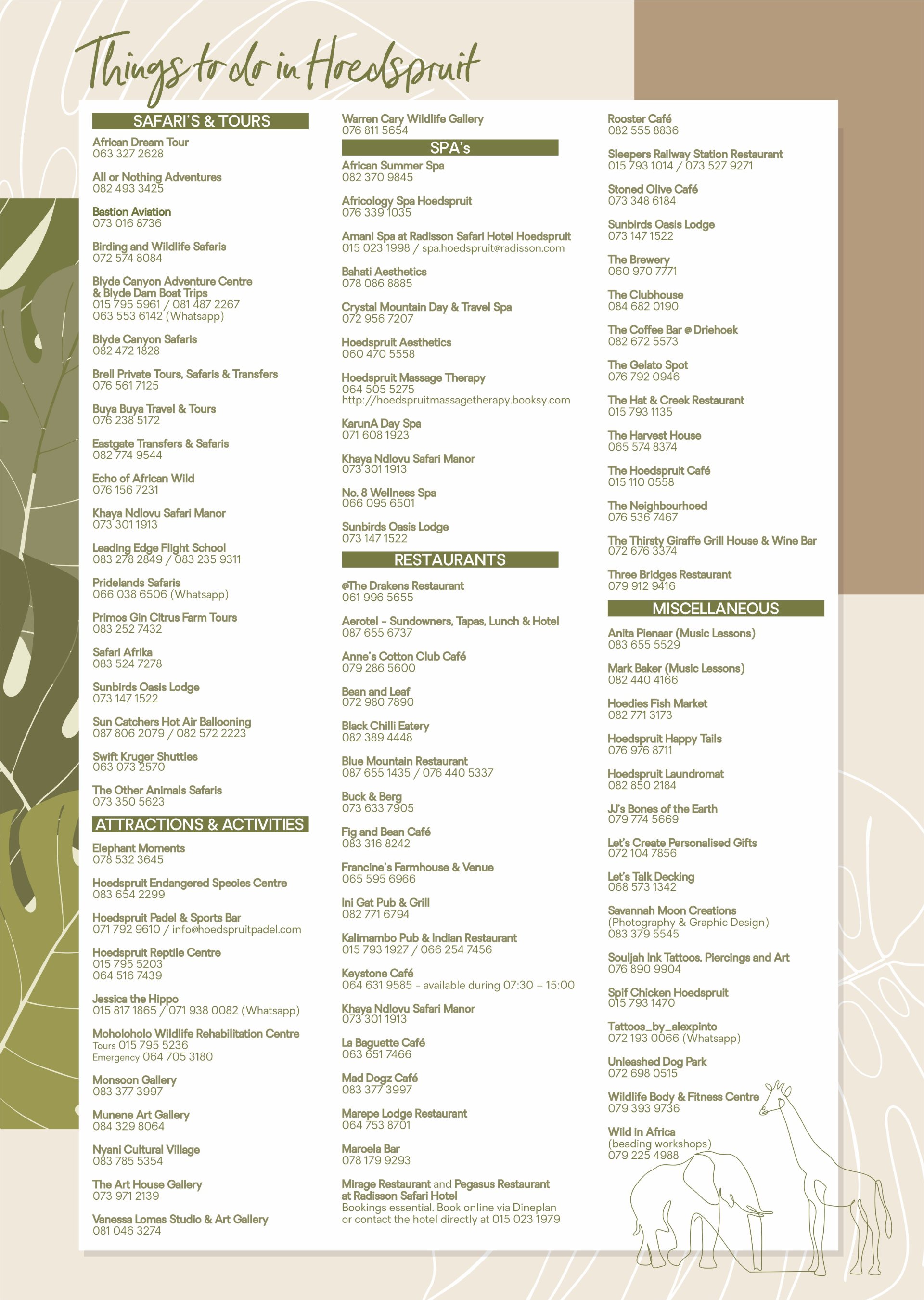 Whether you are considering moving to Hoedspruit or simply want to stay connected to the area, this month’s edition offers a well-rounded look at lifestyle, nature, and investment opportunities.