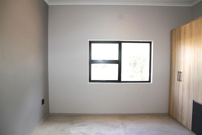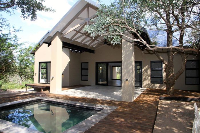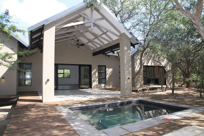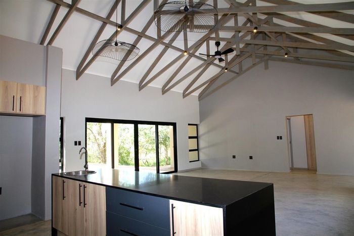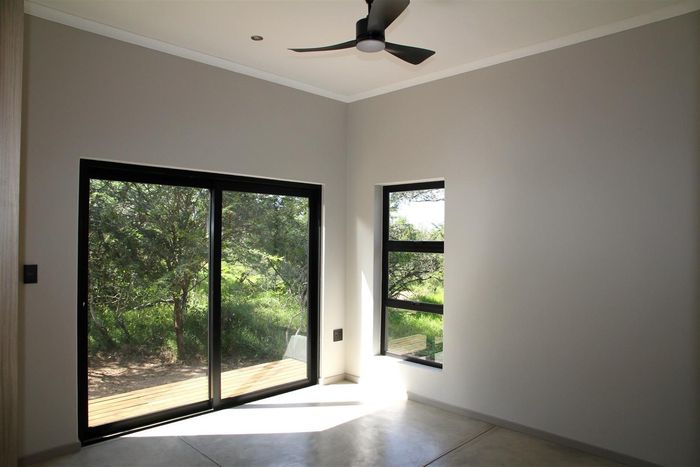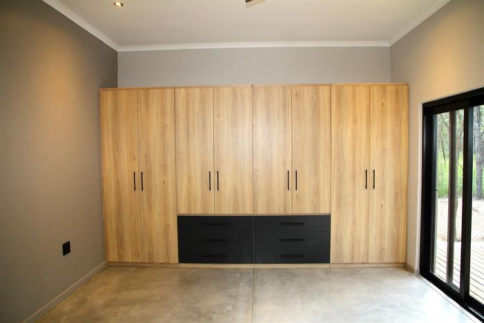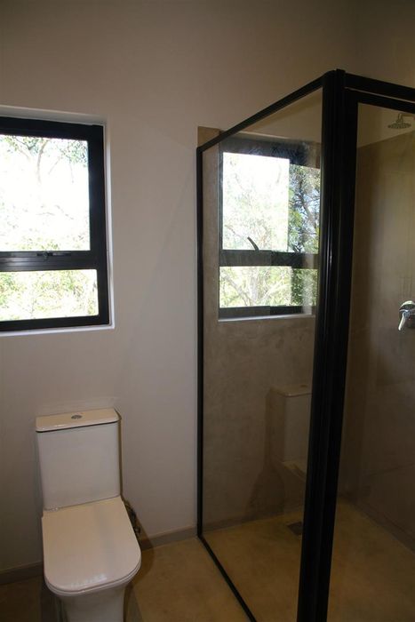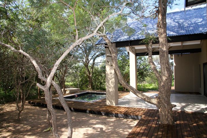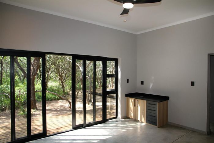 Relax into Lowveld bush living at Kruger Foothills, minutes from Hoedspruit amenities, with a covered patio and outside braai overlooking native trees — cosy one-bedroom, one-bath unit.