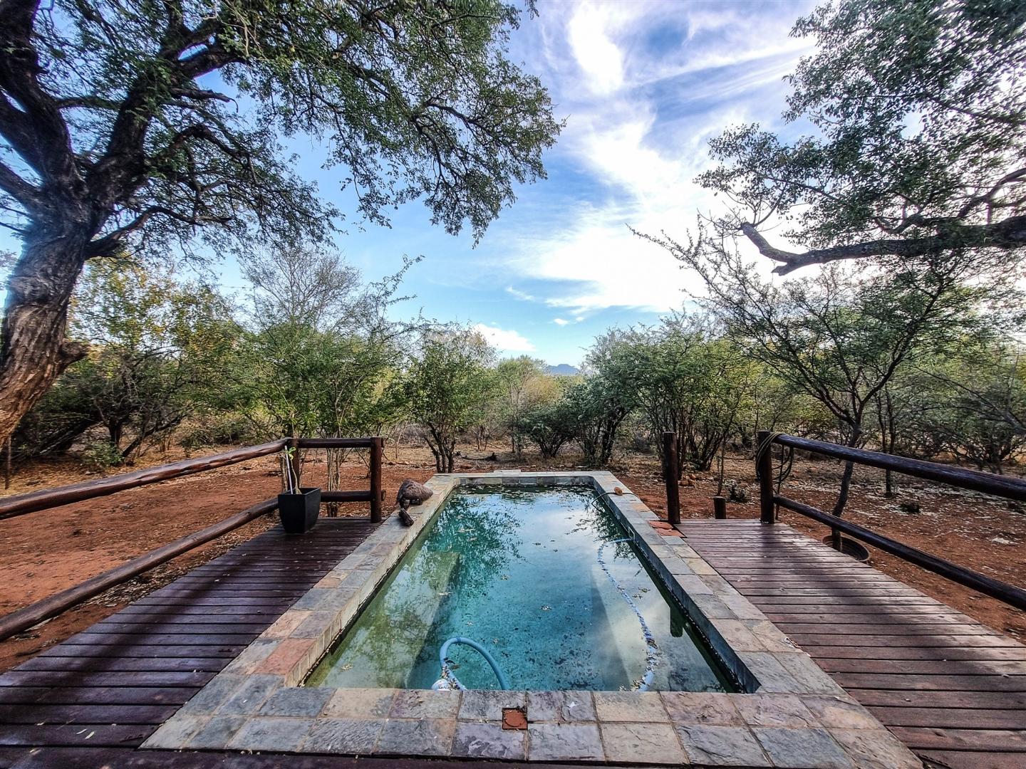 Riverfront family retreat in Raptors View Wildlife Estate with covered patio, boma, pool and Khaya Ndlovu Reserve traverse access for game drives. Four bedrooms, multiple en-suites.