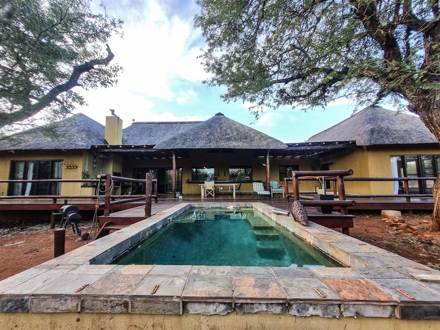 5 bedrooms, 4 bathrooms, 276 m² house on 4900 m² land with rondavel and flat in Hoedspruit Wildlife Estate.