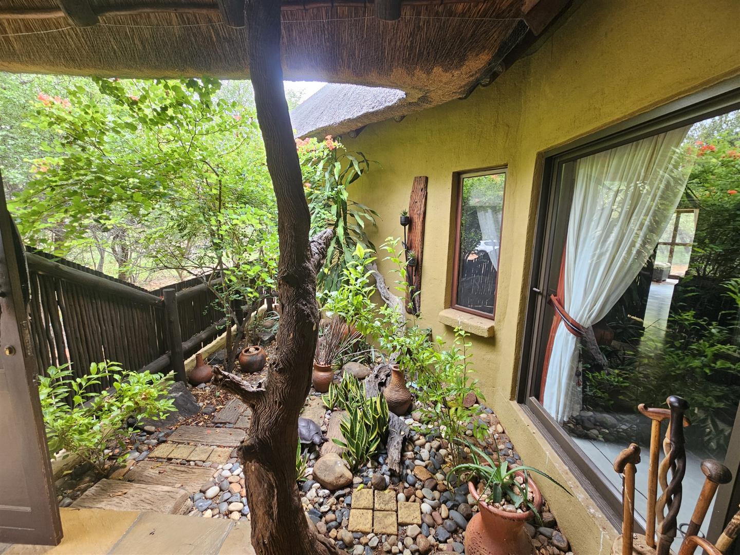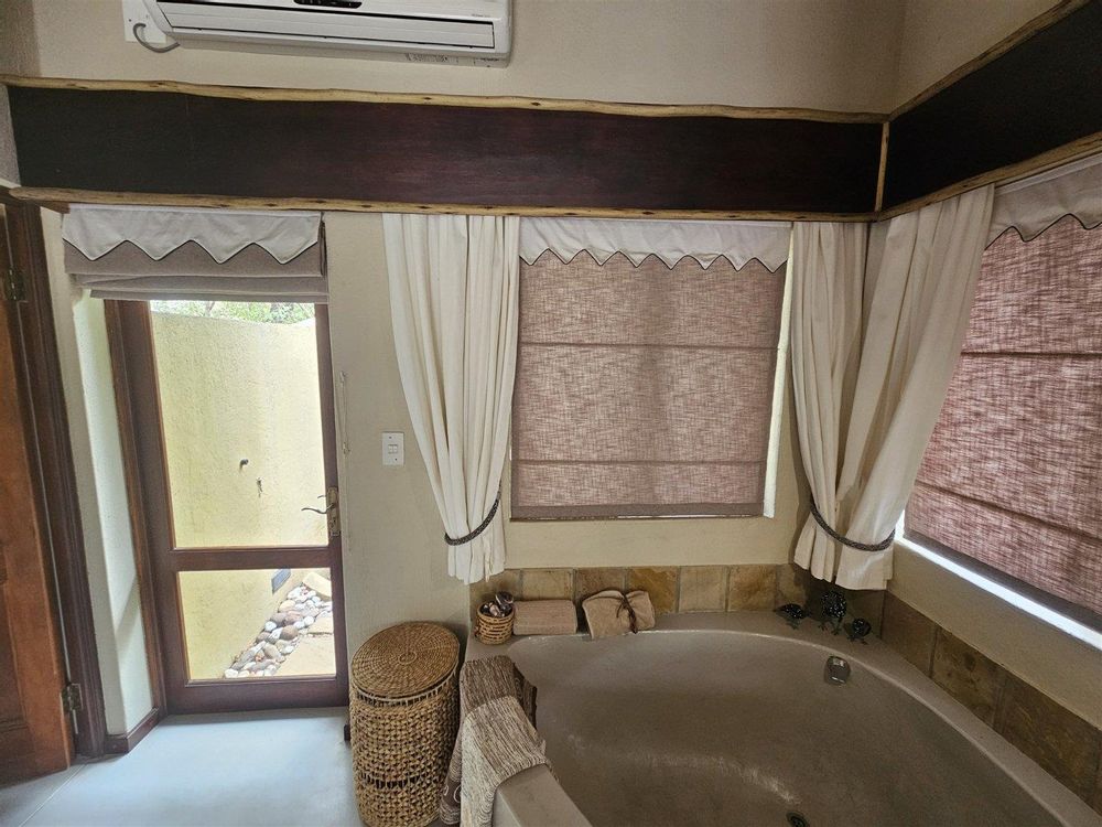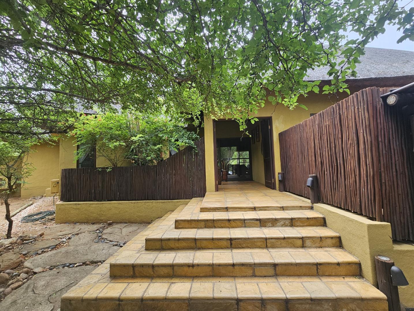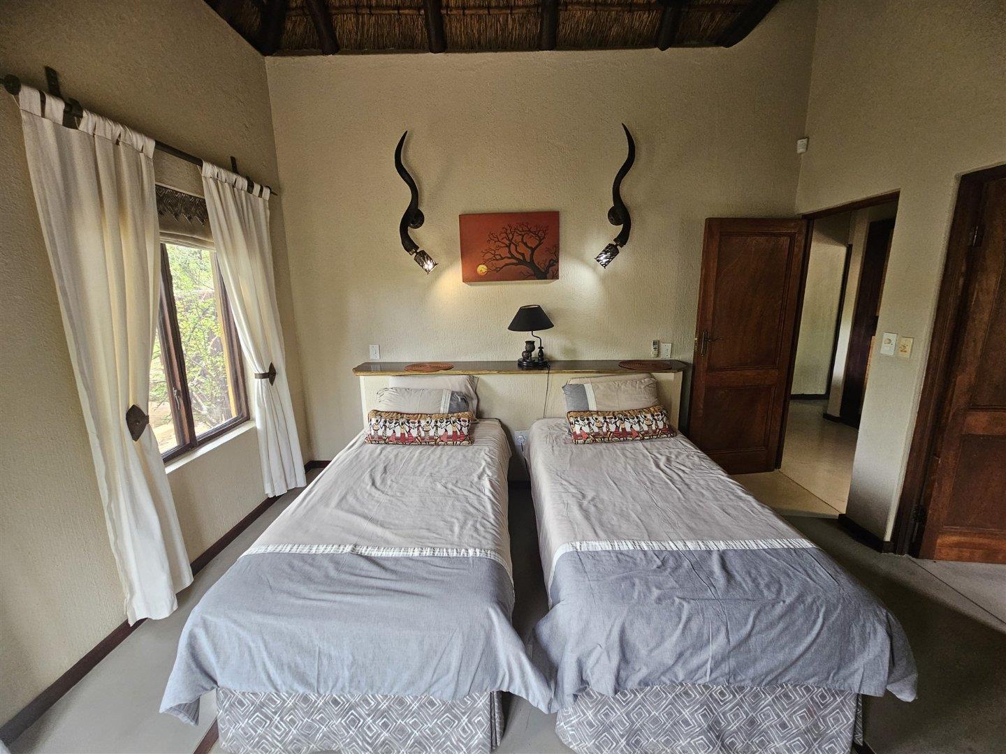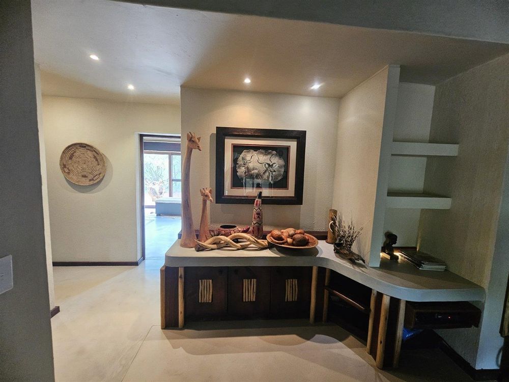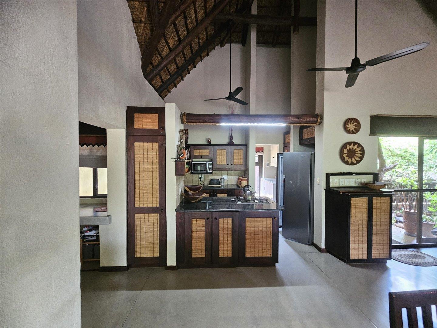 Enjoy the tranquility of the African bush in this beautiful, fully furnished 4 bedroom house in a lovely, peaceful part of Raptors View. This home is move-in ready and has a spacious open plan lounge and dining room cooled by fans, with the kitchen and separate scullery alongside. There is also an outside courtyard. The scullery has a washing machine, tumble dryer and washing machine.