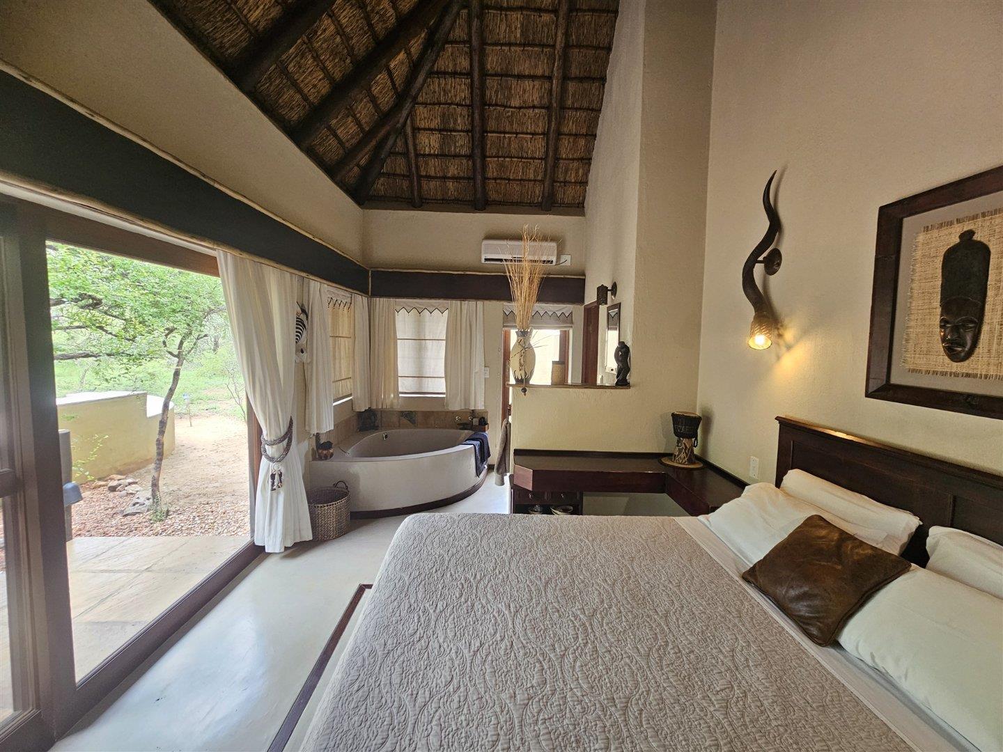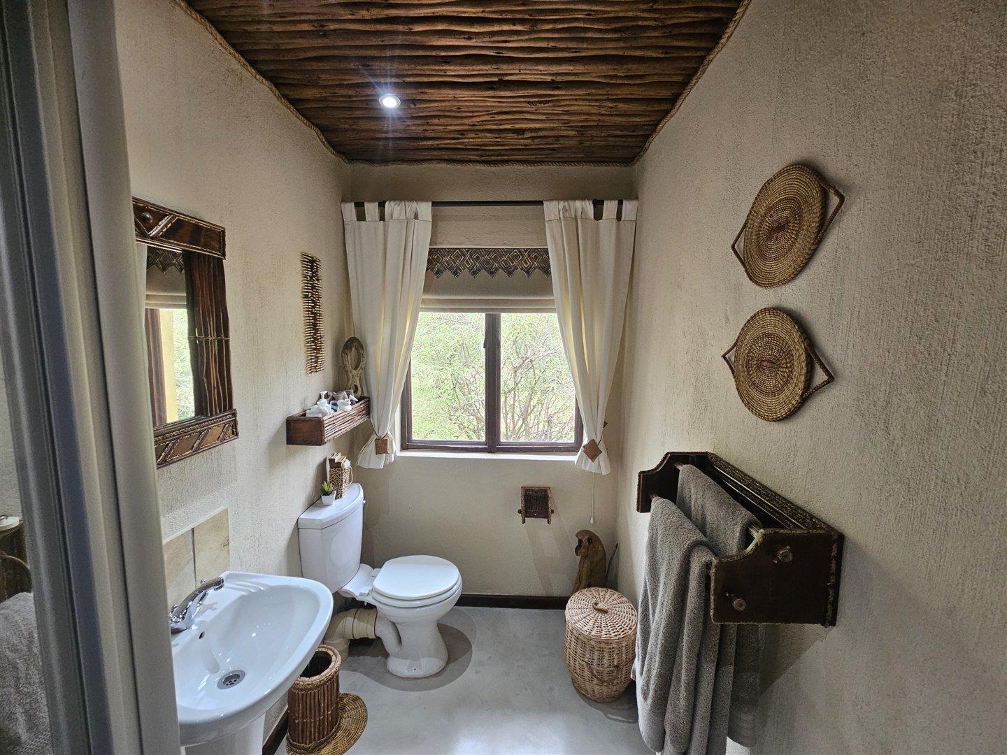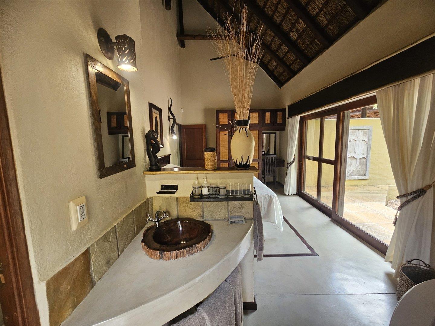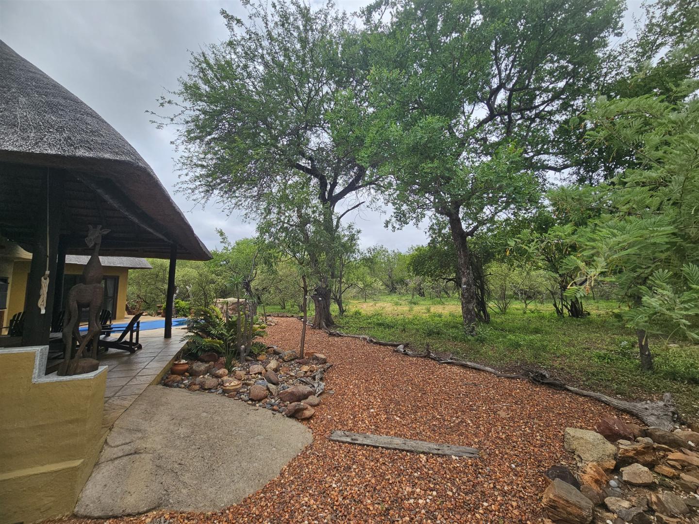 Enjoy the tranquility of the African bush in this beautiful, fully furnished 4 bedroom house in a lovely, peaceful part of Raptors View. This home is move-in ready and has a spacious open plan lounge and dining room cooled by fans, with the kitchen and separate scullery alongside. There is also an outside courtyard. The scullery has a washing machine, tumble dryer and washing machine.