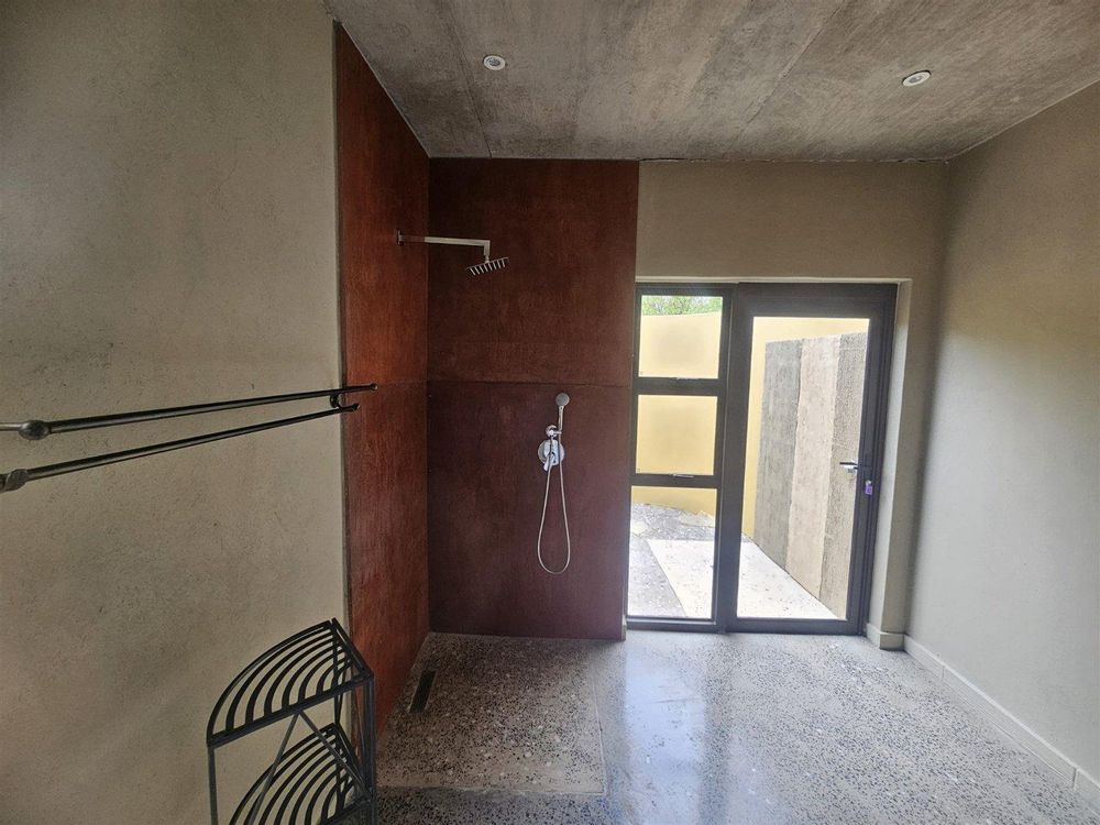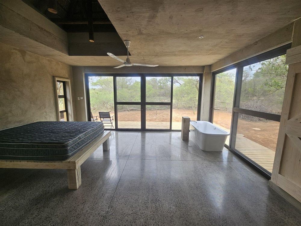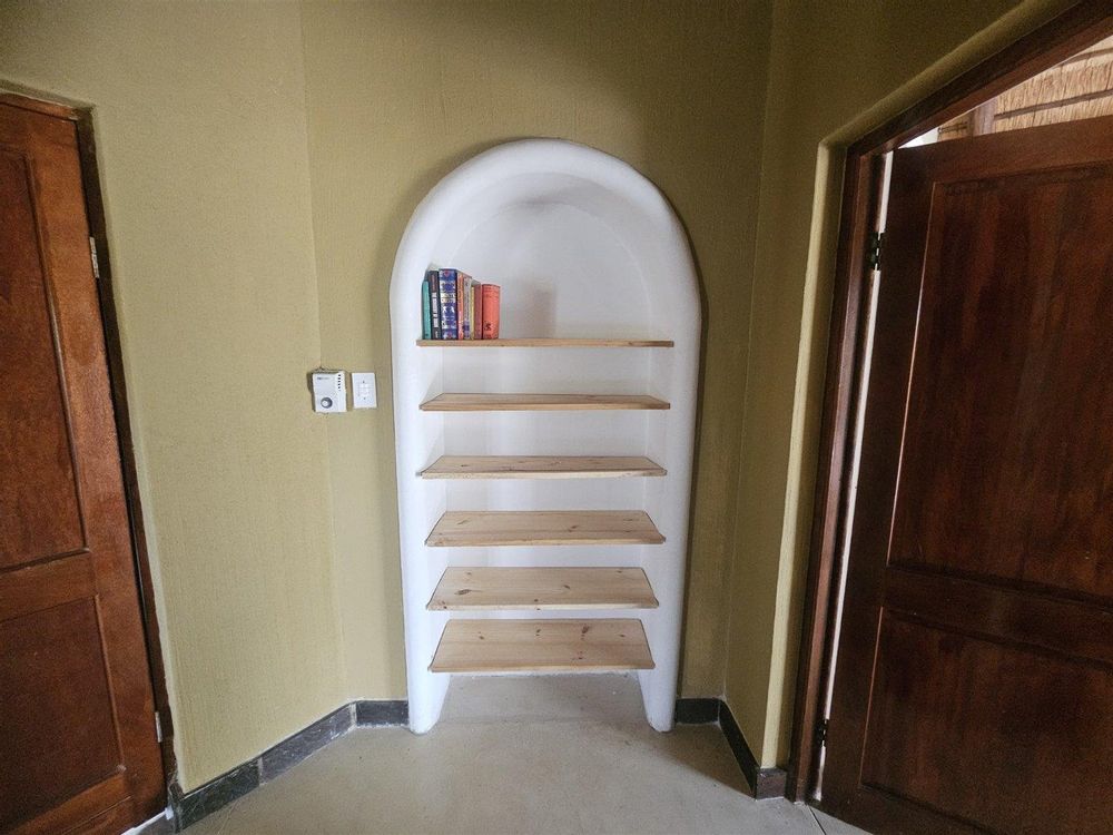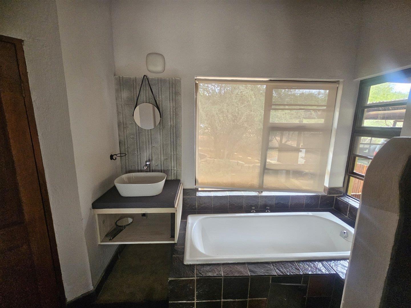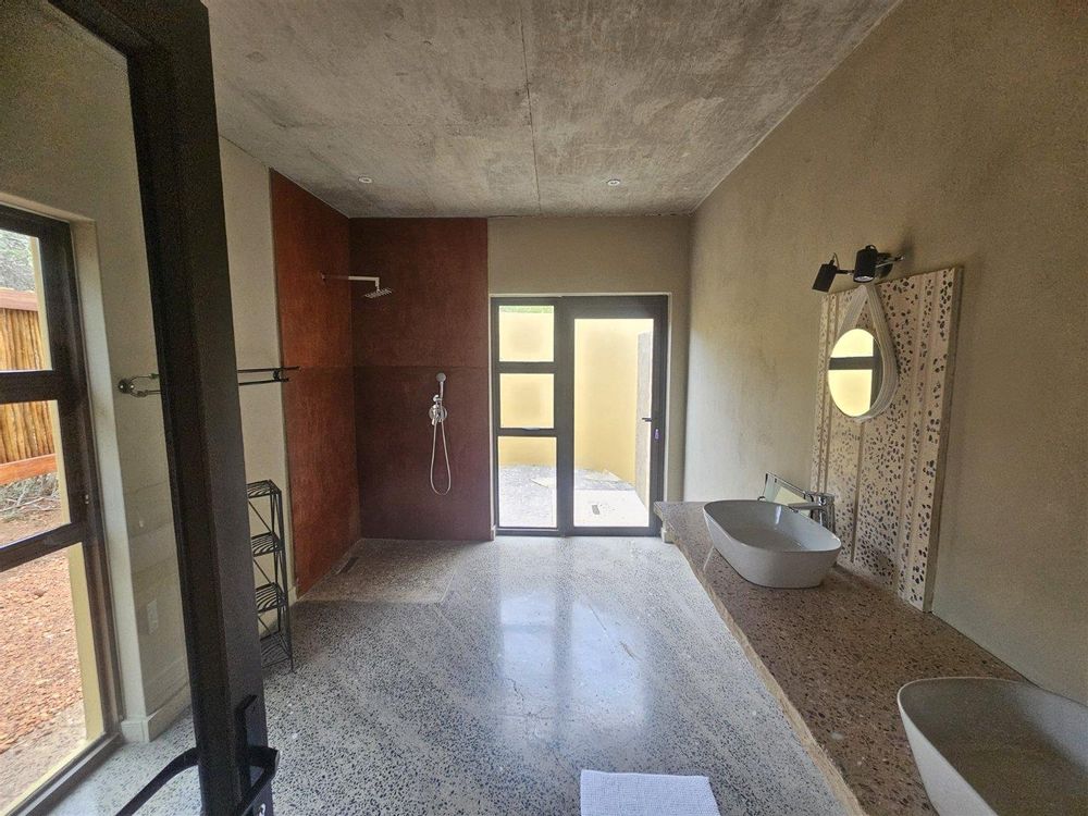 There is a large open-plan kitchen with scullery, dining room and living room. An interesting feature is the upstairs library looking over the lounge area. This comfortable area has sliding doors which lead to a spacious covered deck area with pool and boma overlooking the bush.