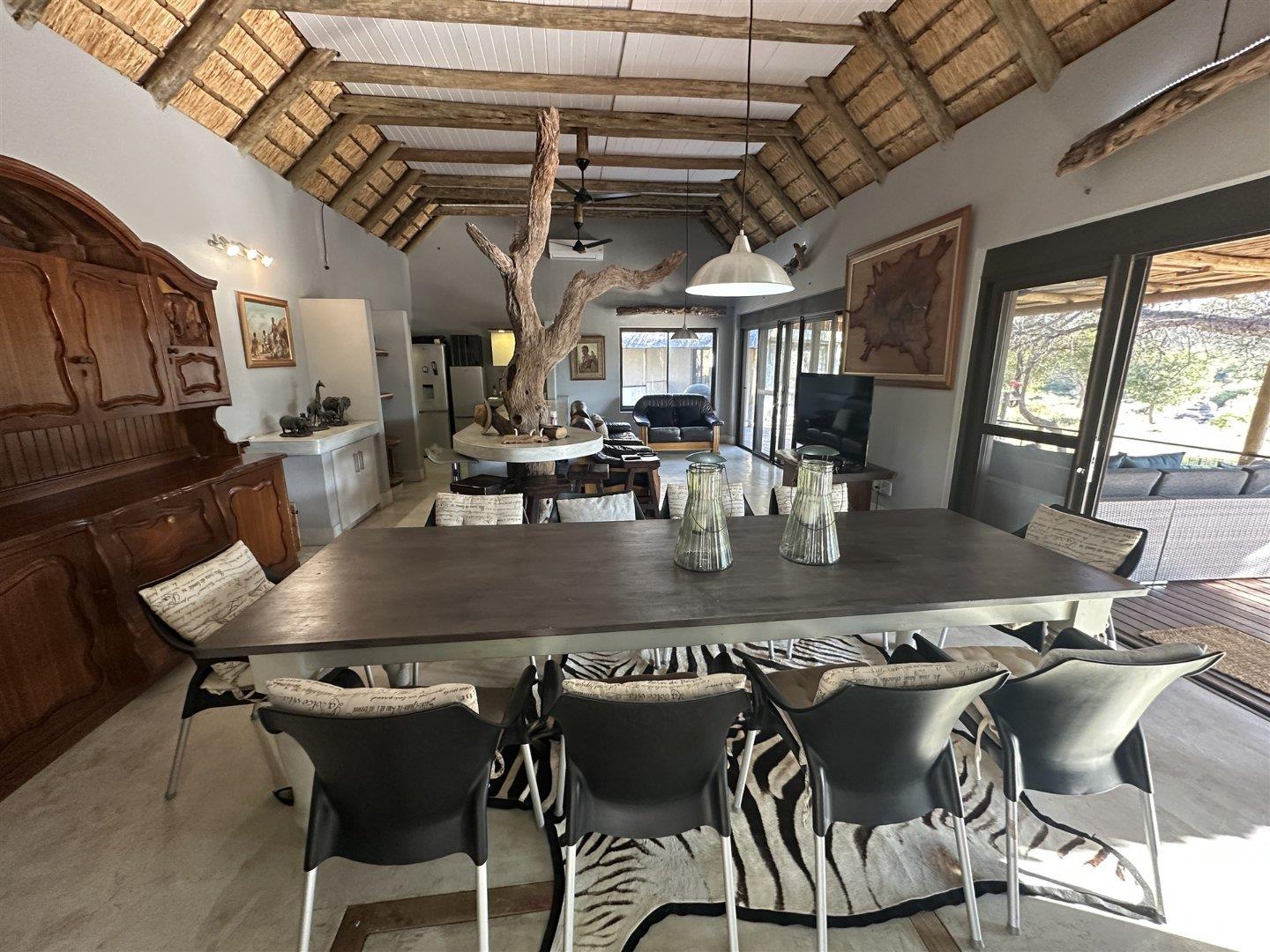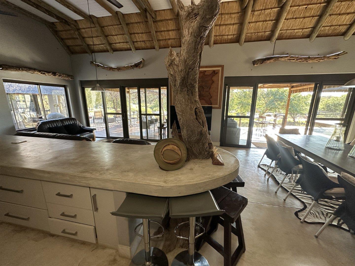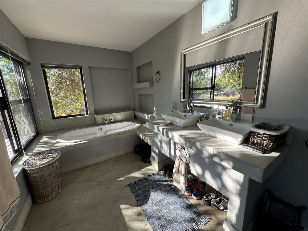 This exceptional 5-bedroom bush home is set on the banks of the flowing Blyde River, offering a rare opportunity to own riverfront property in one of the most scenic and biodiverse areas of the Lowveld. With sweeping views across a grassy floodplain and into lush riverine trees, the property is a sanctuary of tranquillity, where the sounds of flowing water and the call of the fish eagle fill the air. Designed for either permanent living or holiday use, the home combines practical layout with natural charm, including spacious living areas, thoughtful finishes, and multiple outdoor spaces that embrace the surrounding beauty. The home is located within a secure 2,500 ha private reserve that supports a wide variety of game and birdlife and is conveniently just 10 km from Hoedspruit.