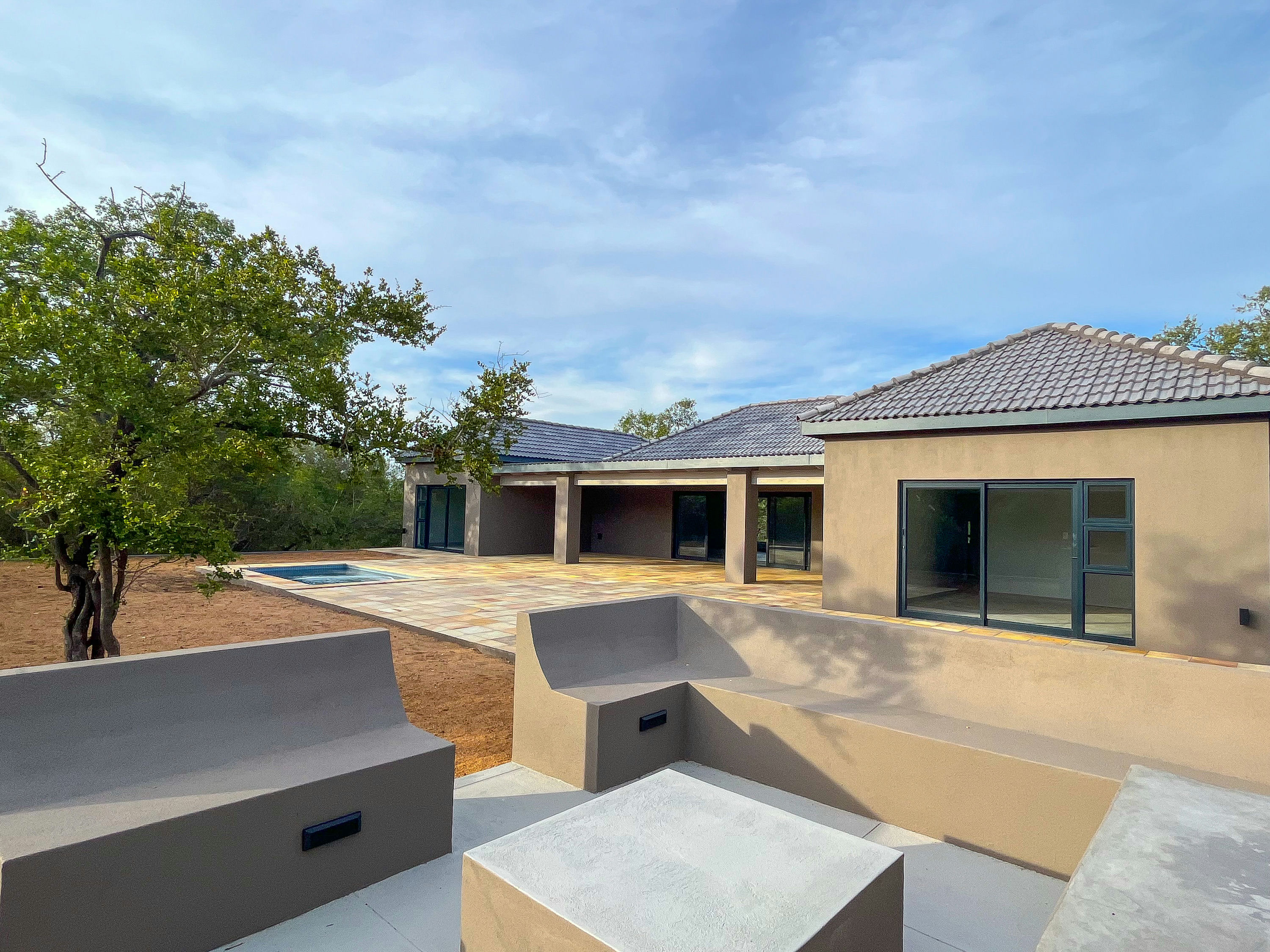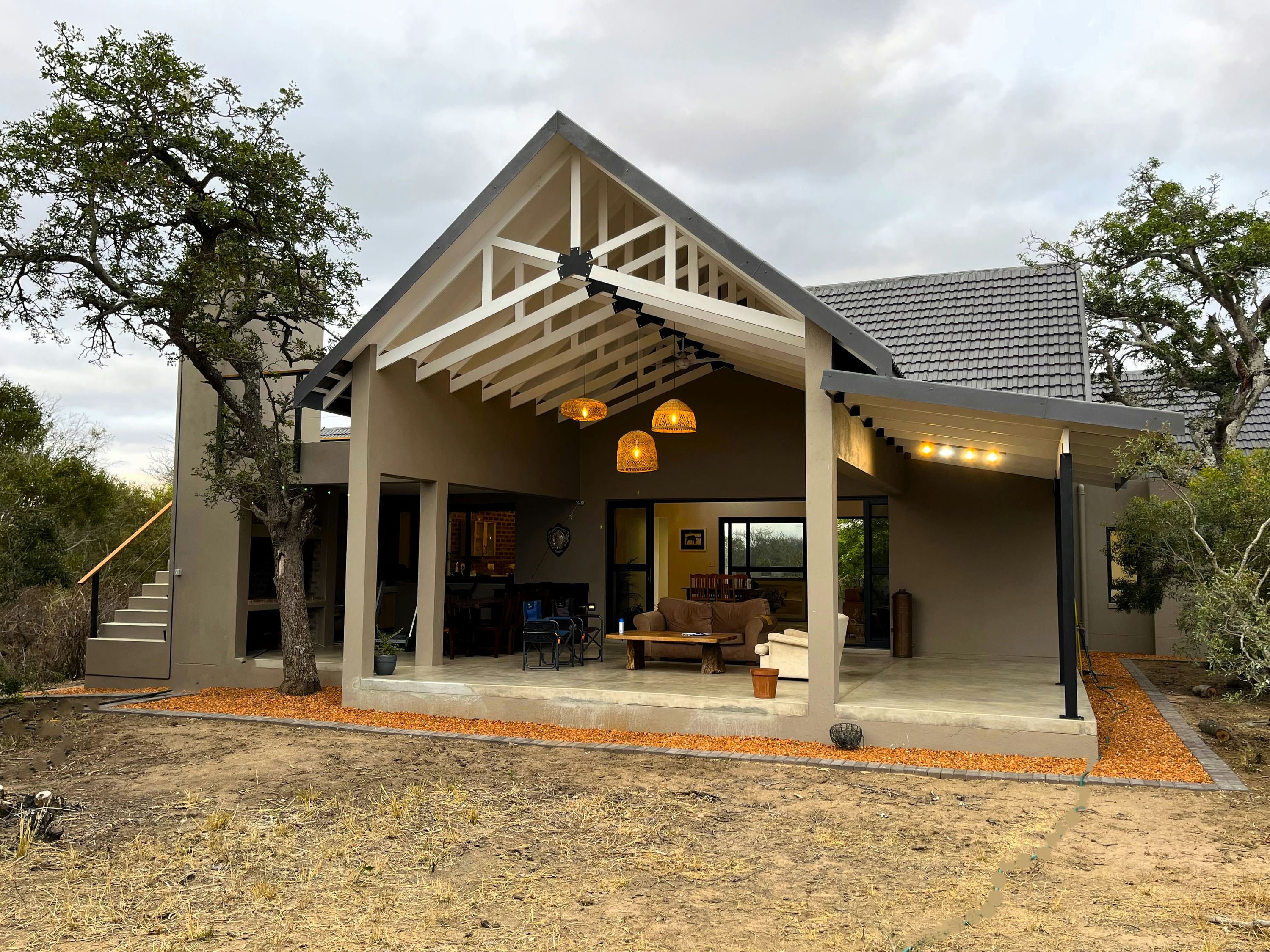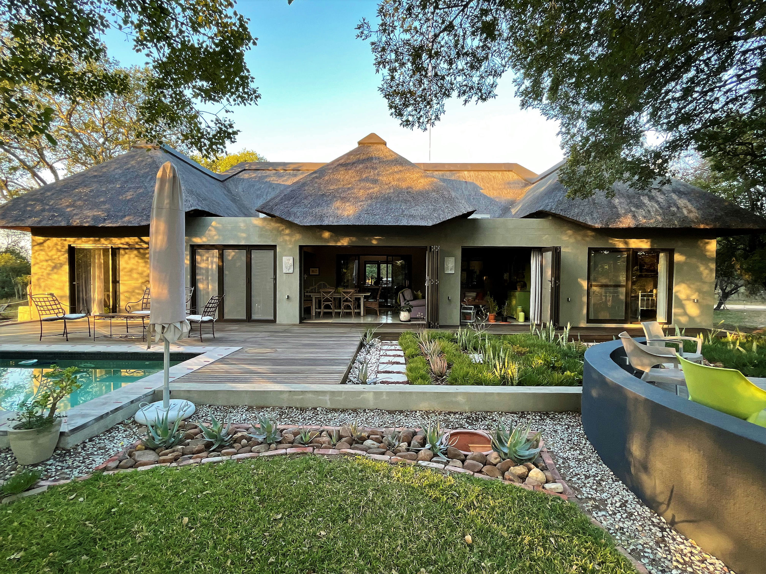 Architectural guidelines are in place and are aesthetically designed to reflect a game lodge “look and feel” to the estate. Thatch and Harvey tile roof structures are allowed and there is no time frame in which to build. A Homeowners Association exists which runs the Estate following the Homeowners rules. These include protection of the environment, ensuring the estate is as quiet and undisturbed as possible, with guidance on other items such as the ability to do long term rentals and consolidation of stands.