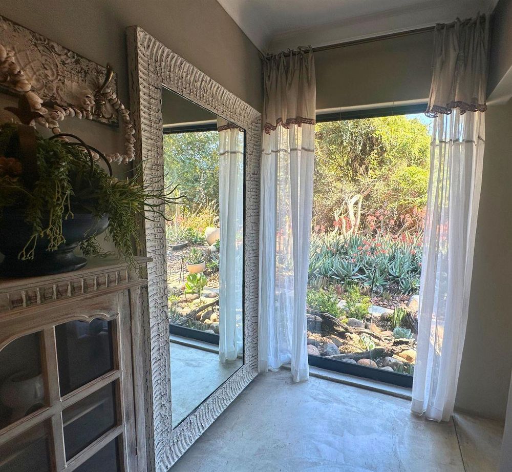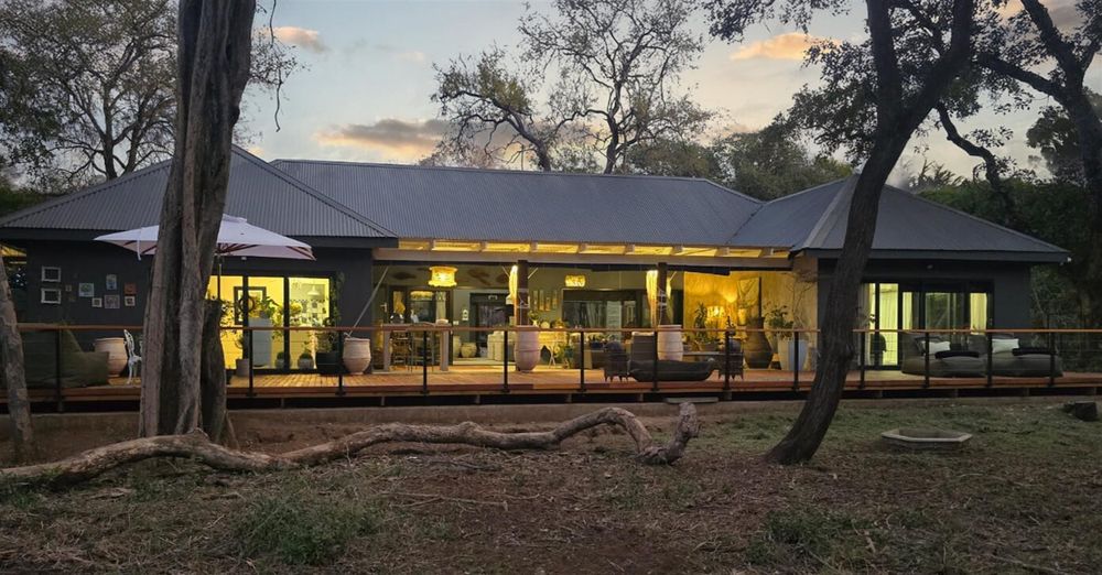 This secluded haven offers a rare turnkey opportunity in Blyde Wildlife Estate. Set among beautiful natural surroundings, the home is framed by towering trees, creating a private and tranquil retreat. Outdoor living is at the heart of the property, with a stunning entertainment area, sparkling pool, sauna, and built-in braai. The deck with roll-down blinds can be enclosed, providing a lovely additional living space all year round. Large windows and glass doors flood the interiors with natural light and showcase uninterrupted views of the greenery.