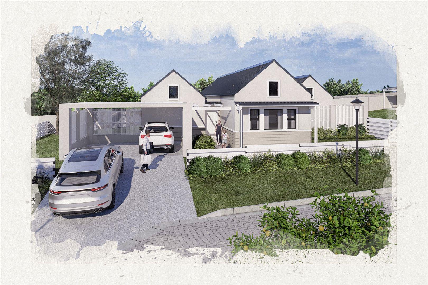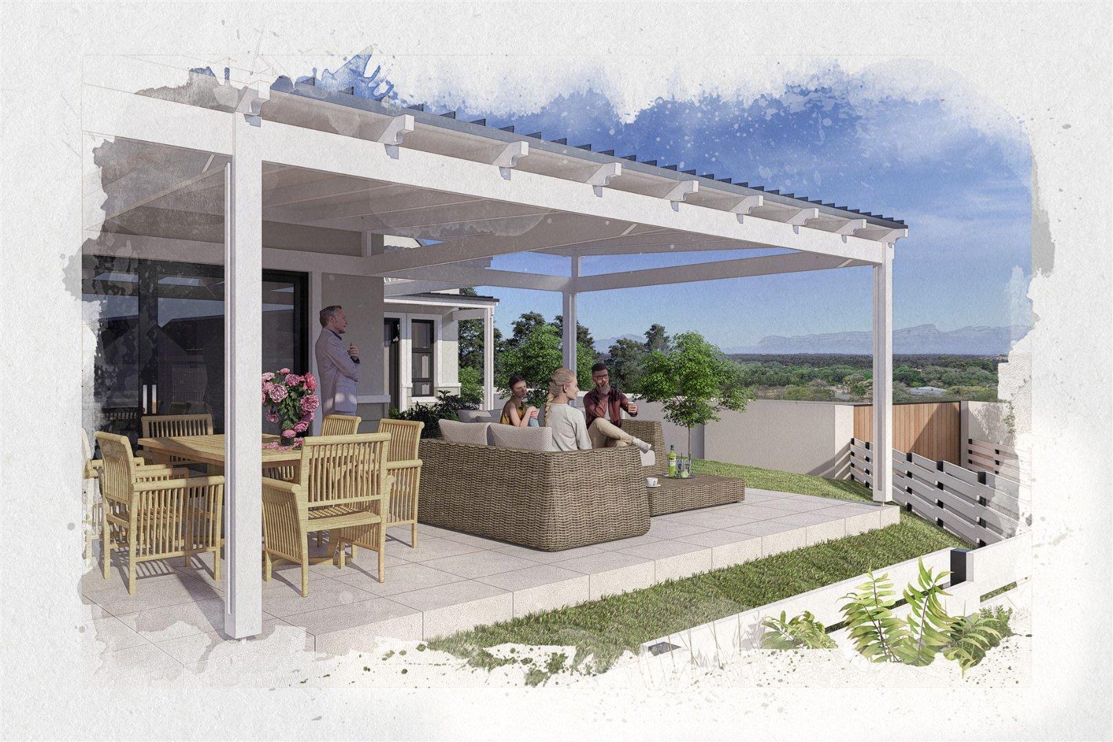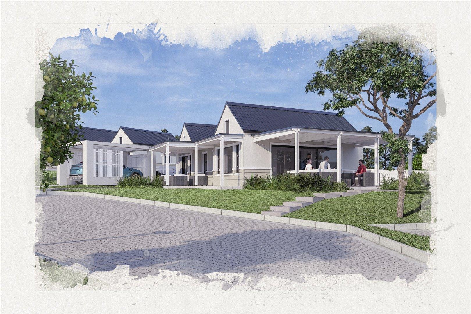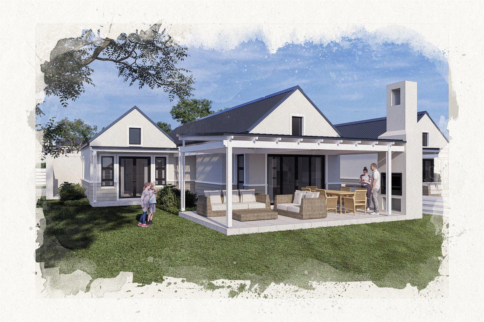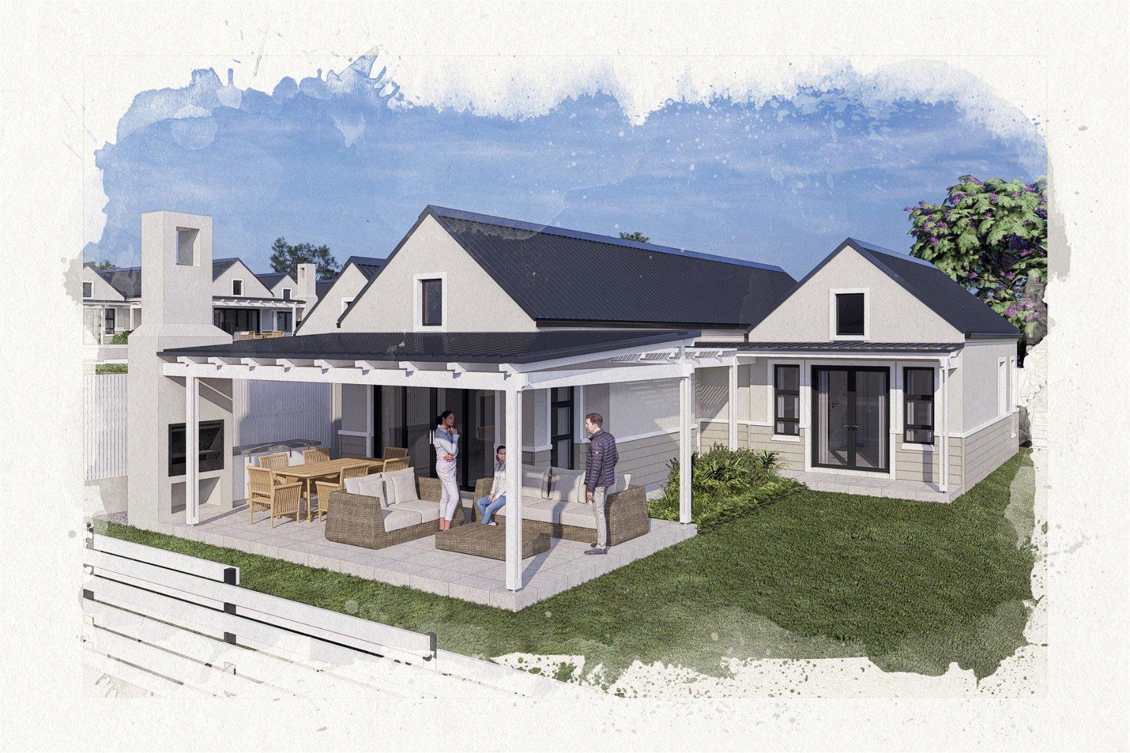 These off-plan houses feature a contemporary, luxury farmhouse style and is also full title ownership. The 2 Bedroom house is 200m2 in size and comprises an open-plan lounge, dining area, and kitchen with a separate scullery/laundry. The lounge area opens to a beautiful, covered terrace with a built-in braai and garden, perfect for hosting guests.