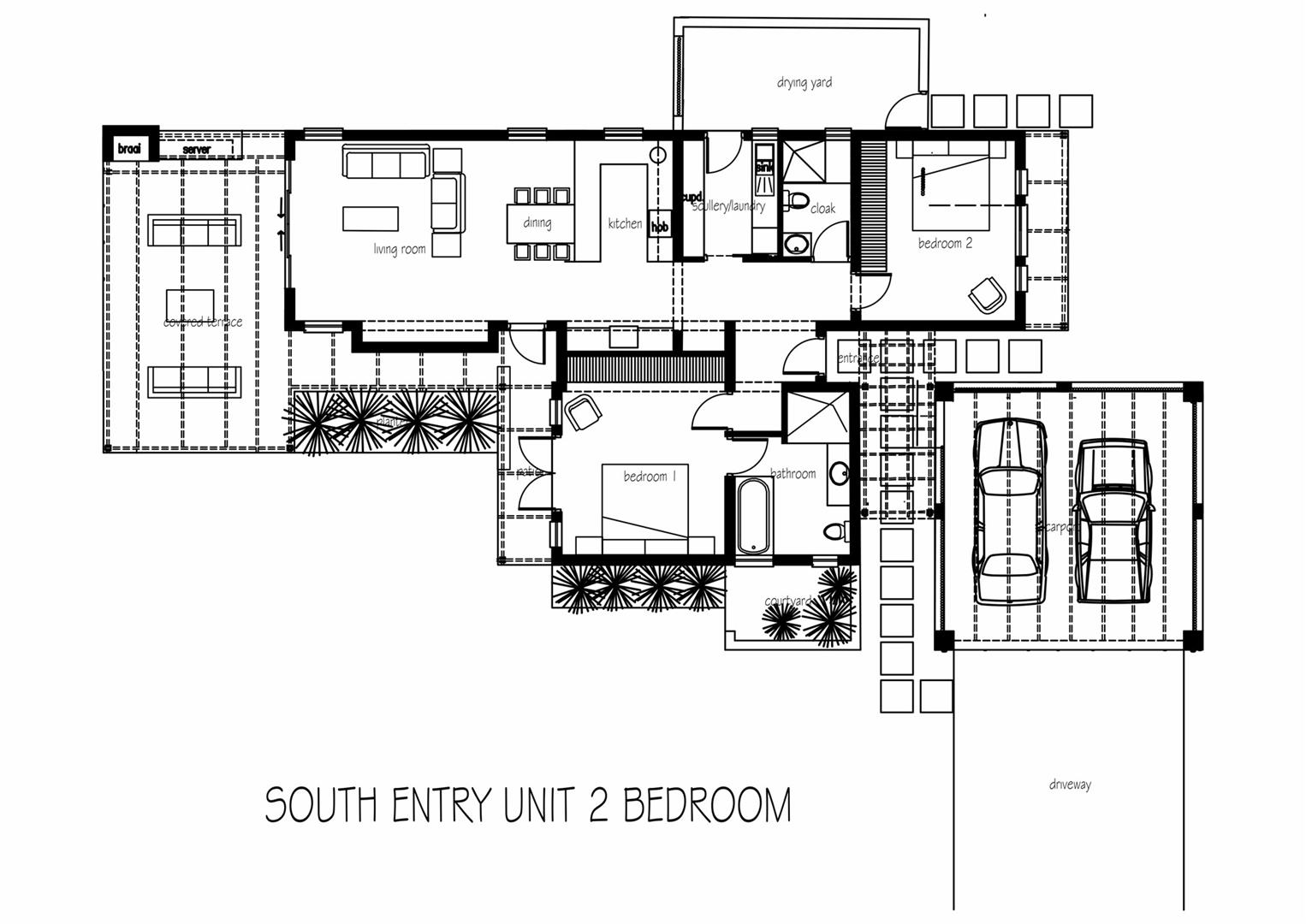 Each of the two bedrooms have their own covered patios, connected by walkways. The main bedroom is ensuite with basin, toilet, bath and shower. The second bedroom use a separate bathroom comprising of basin, toilet and shower. There is also an option to add solar or a pool as an optional extra. Each unit also has a double covered carport.