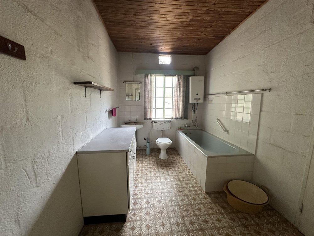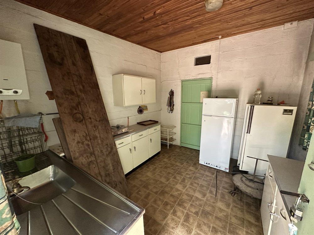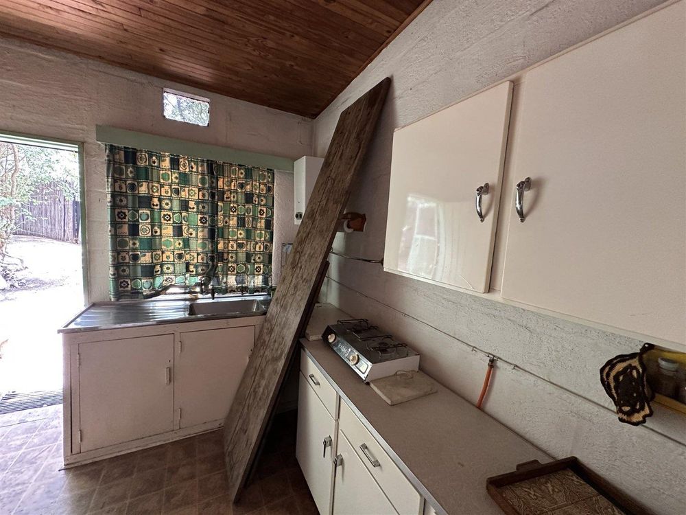 - The home has a traditional iron roof with a Knotty pine ceiling and concrete screed floors.