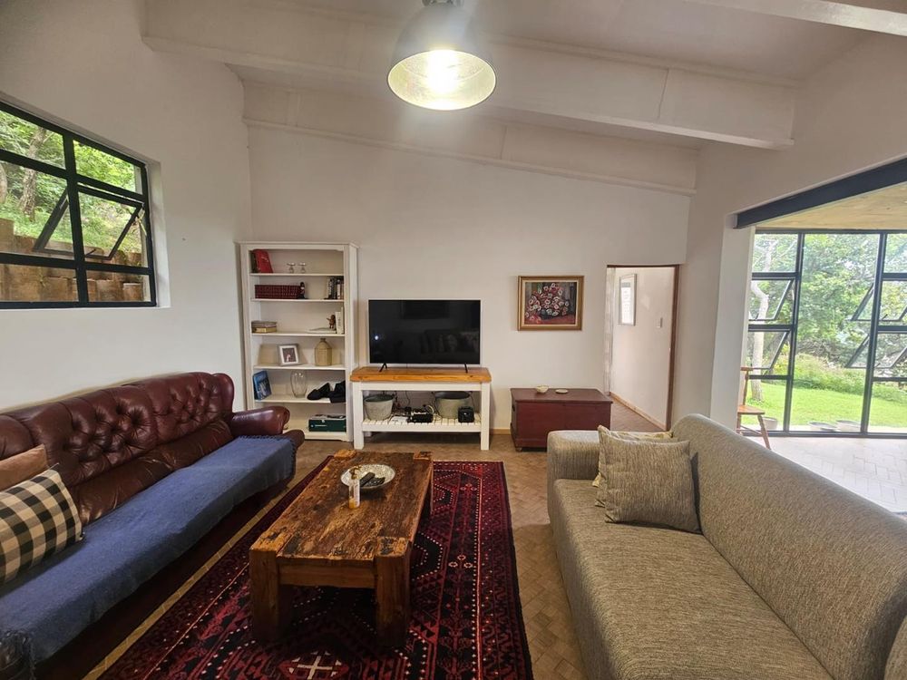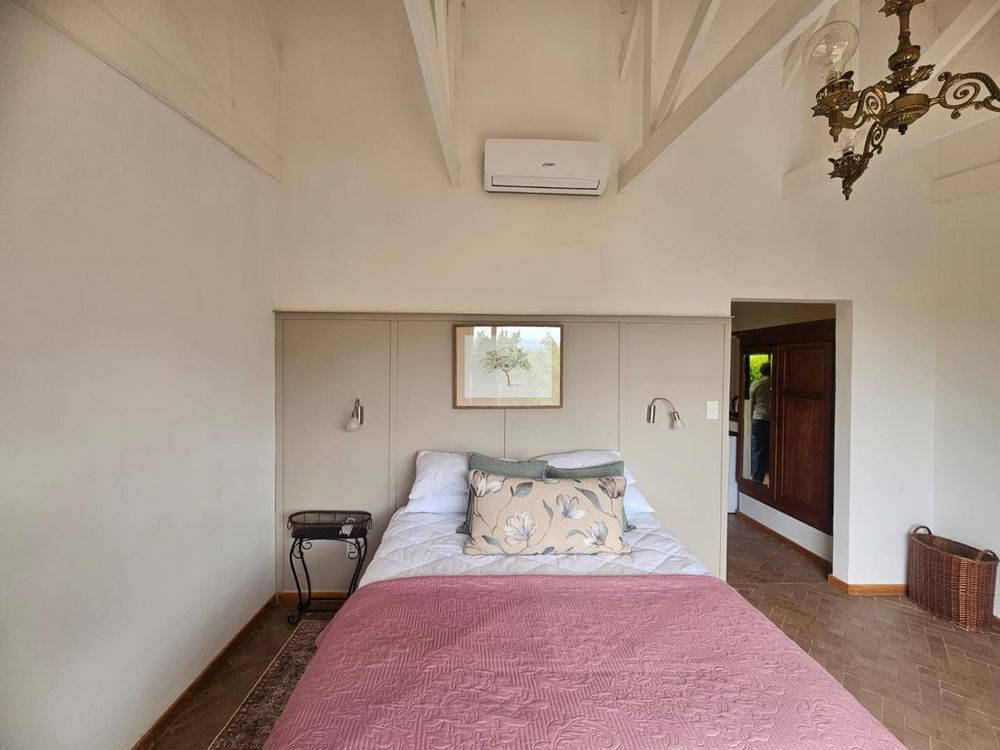 The cozy ground floor boasts a lounge, dining room, kitchen with a separate kitchen table in front of a huge fireplace for those cooler evenings around the fire. This area also has glass doors that create a lovely breeze through the house on warmer days when opened. There is also a scullery and pantry cupboard. There is also a guest toilet downstairs.