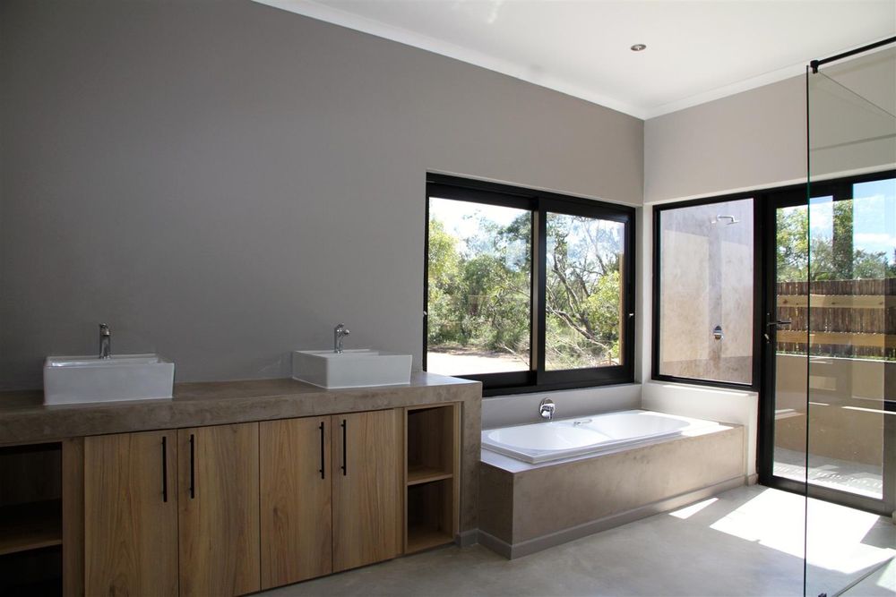 This stunning home was completed on the 30th March 26 and is situated in Moditlo Wildlife Estate. Surrounded by magnificent African bush, this residence offers a serene and picturesque setting. Designed with an inviting color palette and carefully selected finishes, the home embodies comfort and style within a Big 4 estate. Expansive windows and distinctive architectural elements allow for abundant natural light, seamlessly blending indoor and outdoors living.