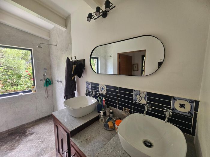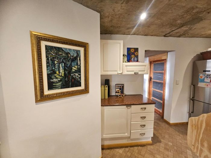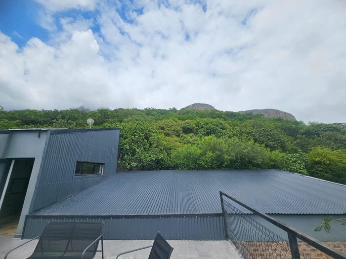 Enjoy evenings on a rooftop deck with endless views in sought-after Kampersrus; fully furnished double-storey home with cosy fireplace, solar-powered borehole, three bedrooms, 3.5 baths, and three covered bays.